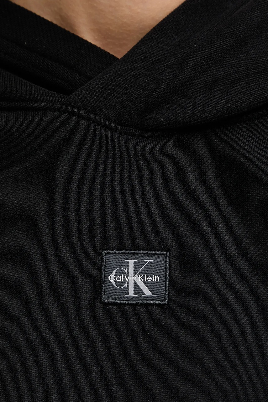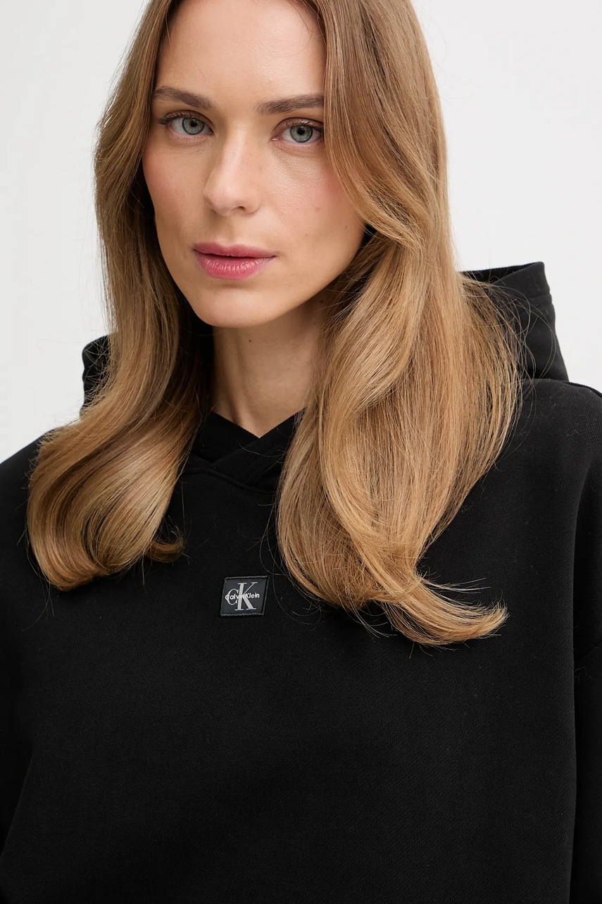 Calvin Klein Jeans bluza bawełniana damska kolor czarny z kapturem gładka LV047D232G