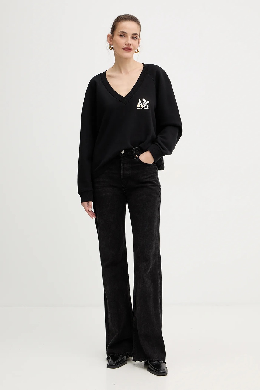 Armani Exchange bluza bawełniana damska kolor czarny z nadrukiem XW001461 AF16192