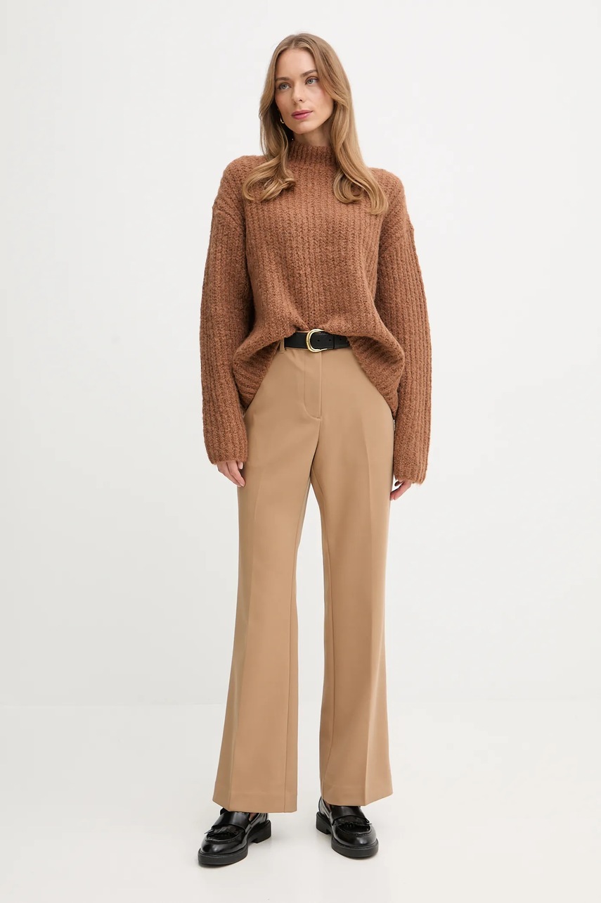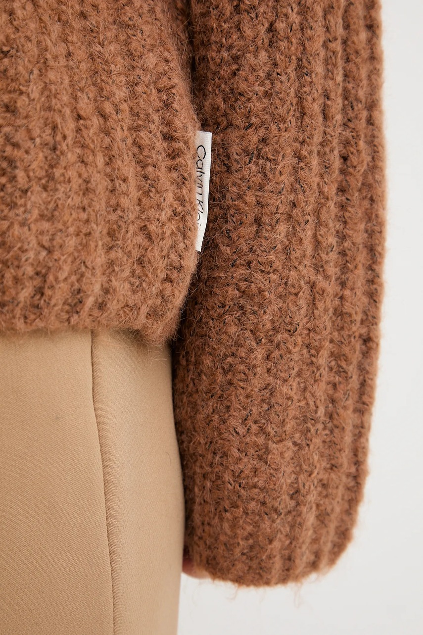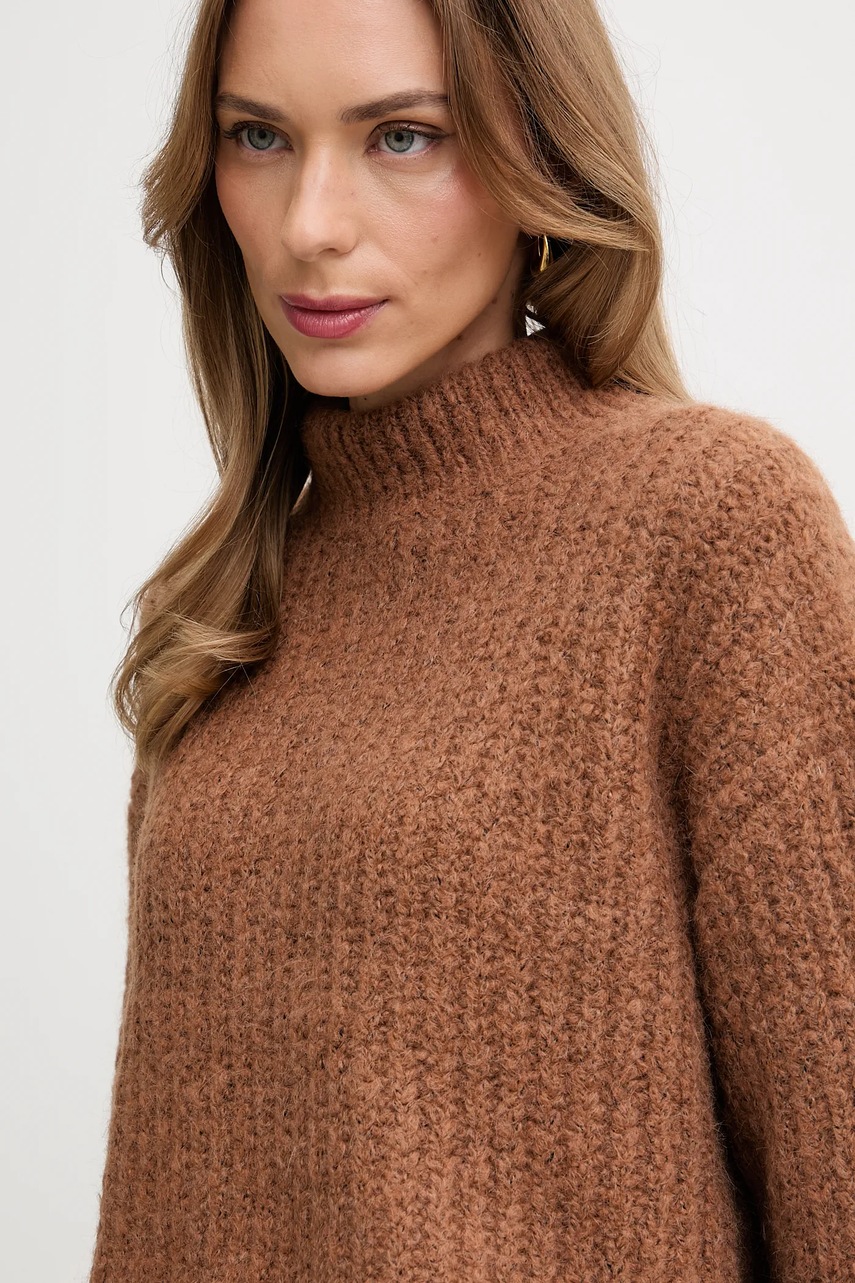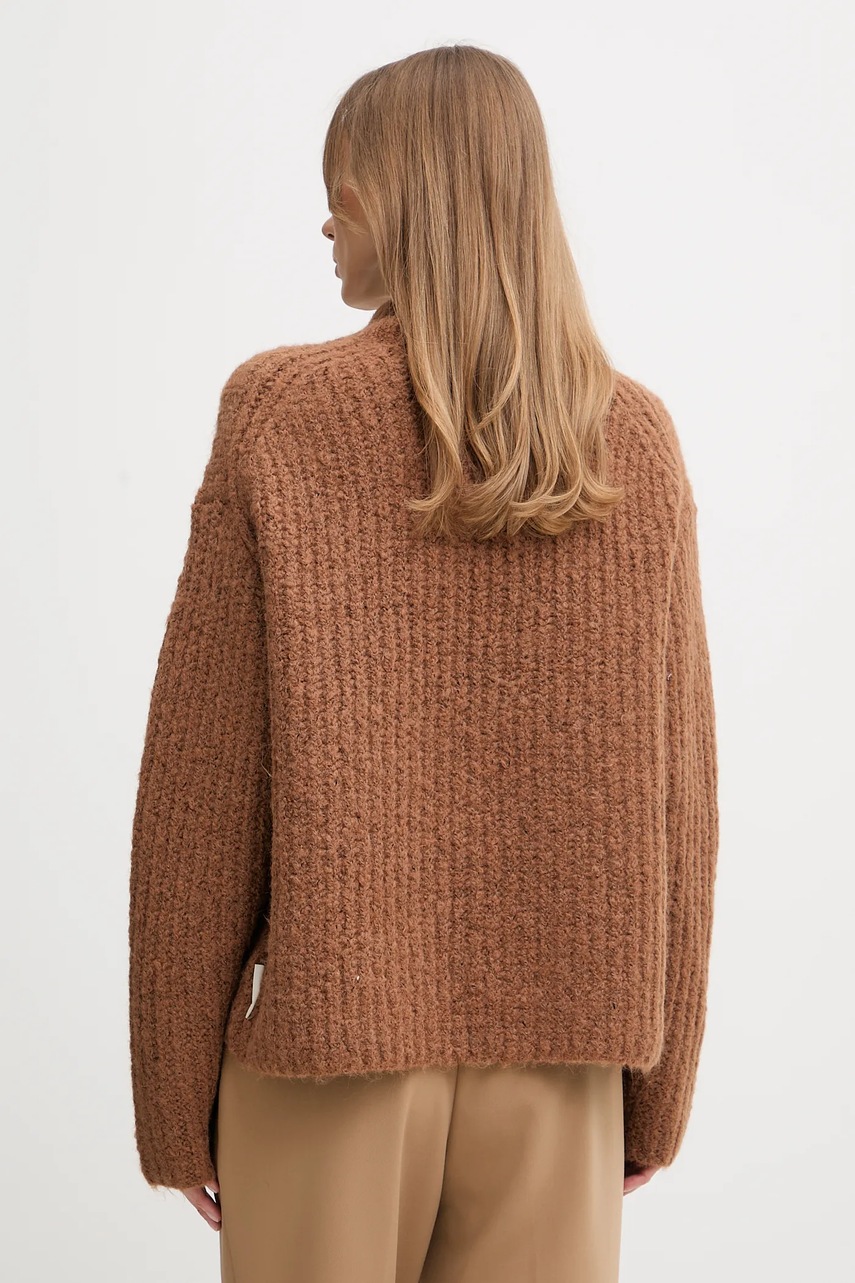 Calvin Klein Jeans sweter damski kolor brązowy ciepły z półgolfem LV044D361G