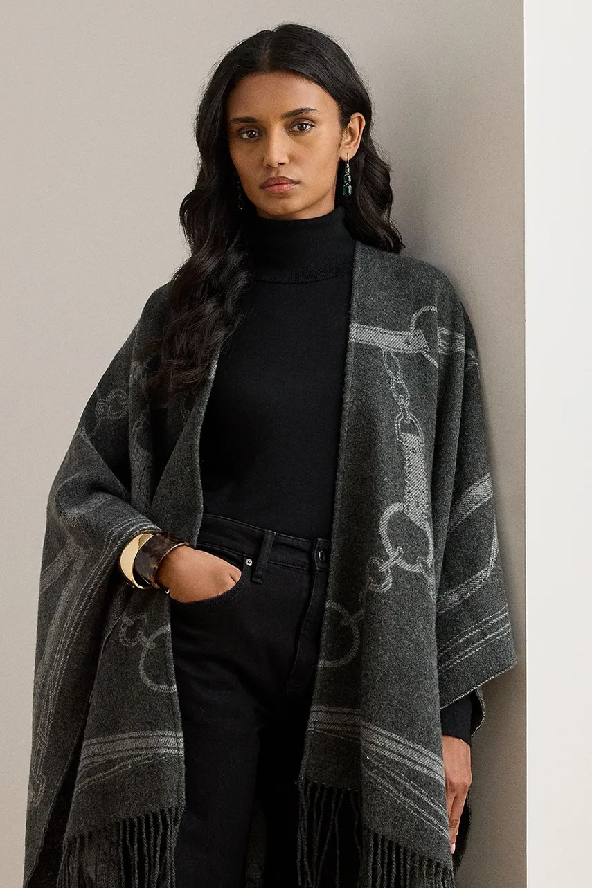 Lauren Ralph Lauren poncho z dodatkiem wełny kolor szary lekkie 454P04529
