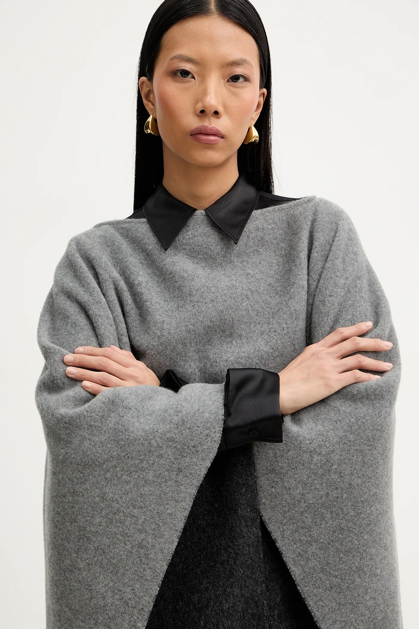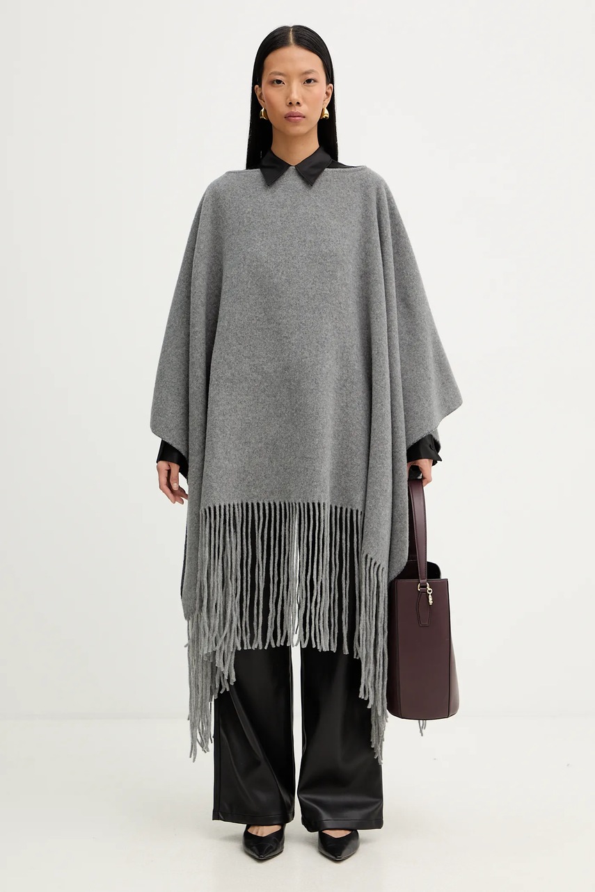 Liviana Conti poncho wełniane kolor szary ciepłe A5WF58