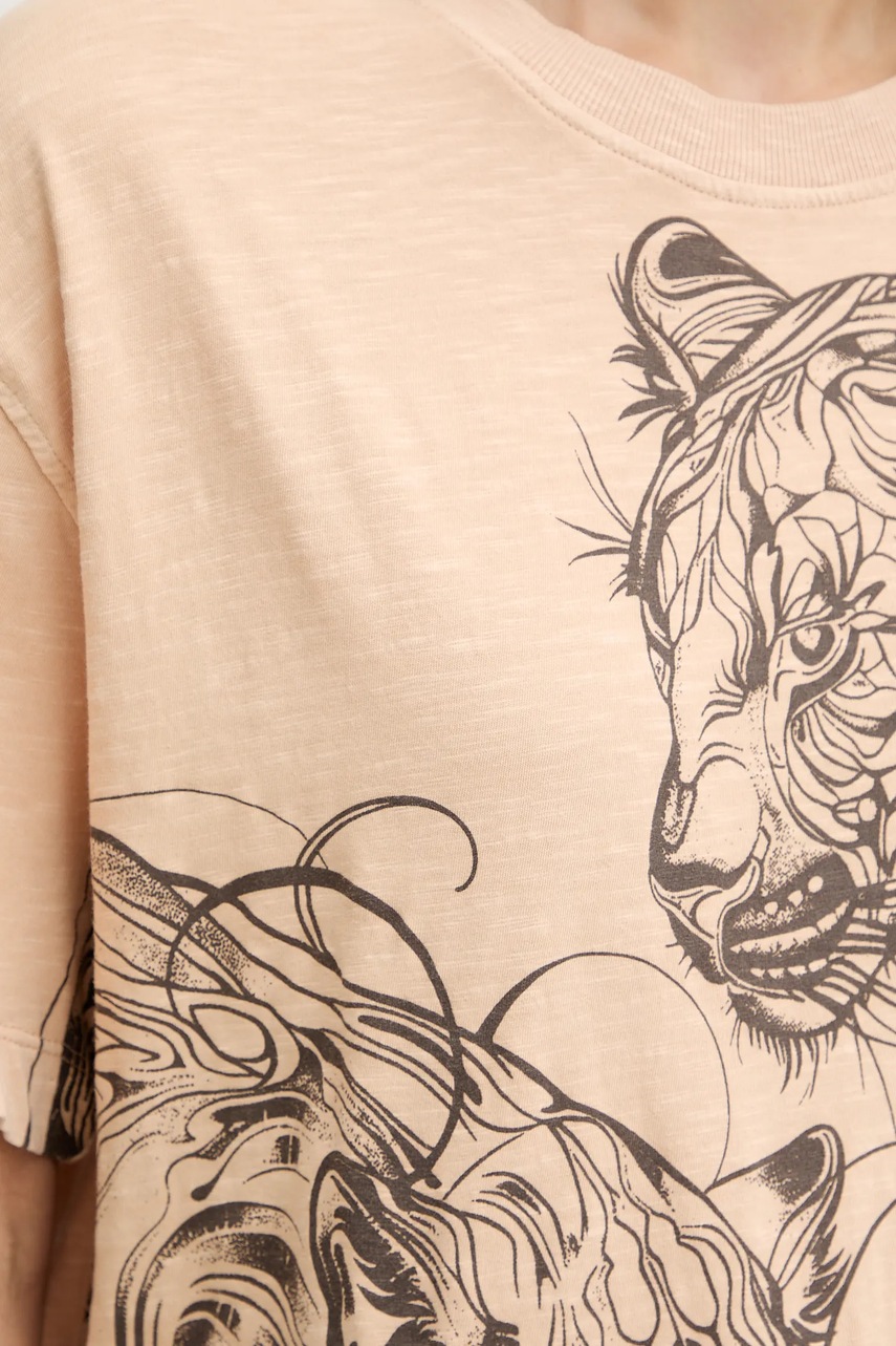 Guess t-shirt bawełniany damski kolor beżowy W5YI09 K6XN4