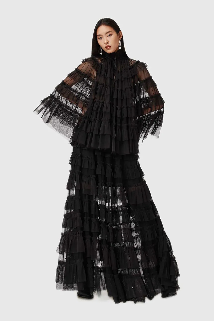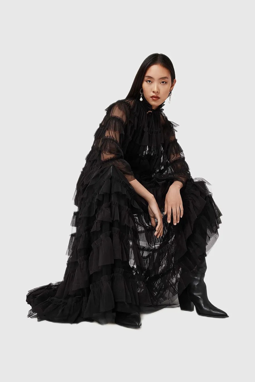 AllSaints spódnica kolor czarny maxi rozkloszowana W071RD