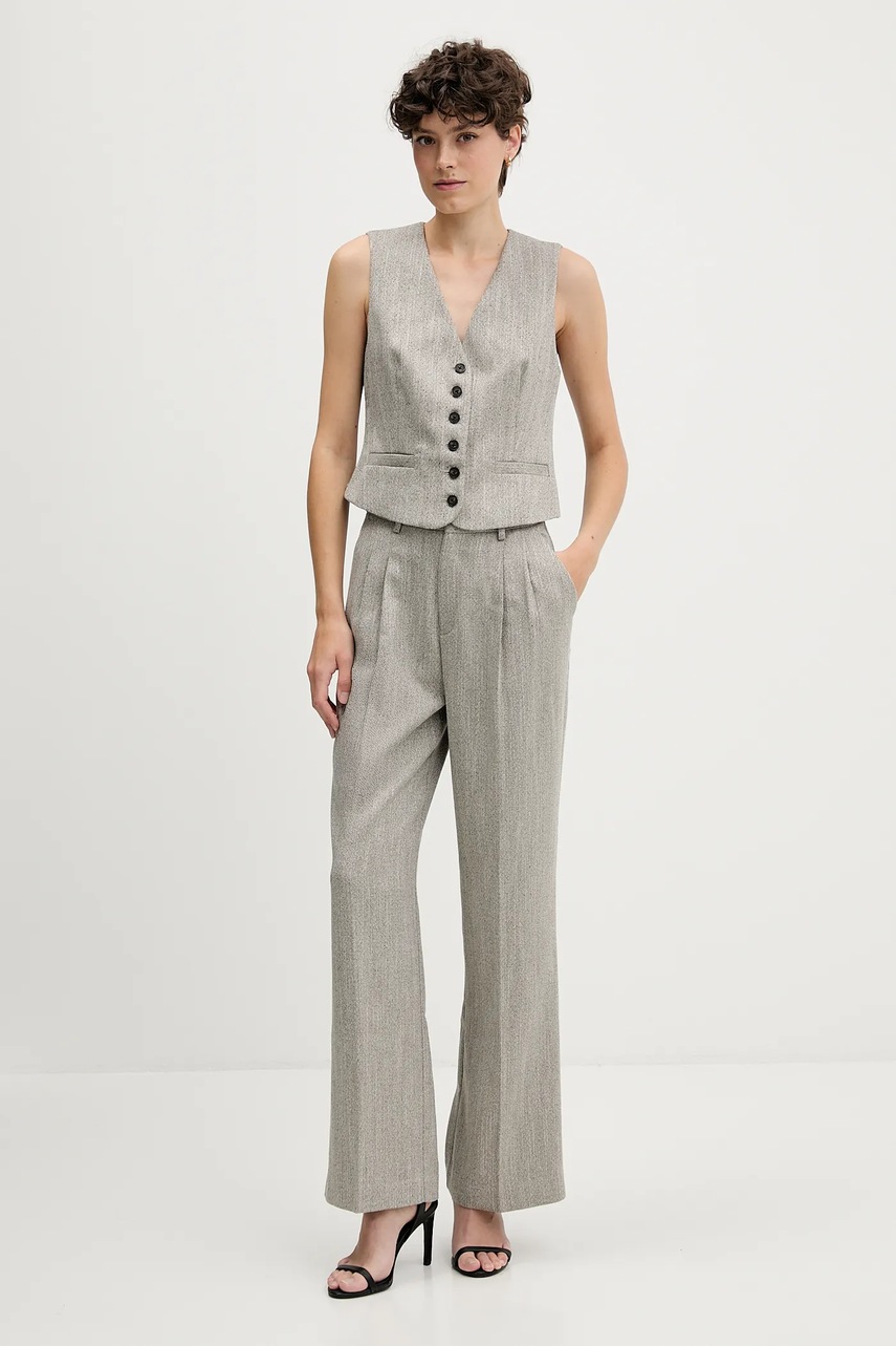 Pedro del Hierro spodnie damskie kolor beżowy szerokie high waist 7602530