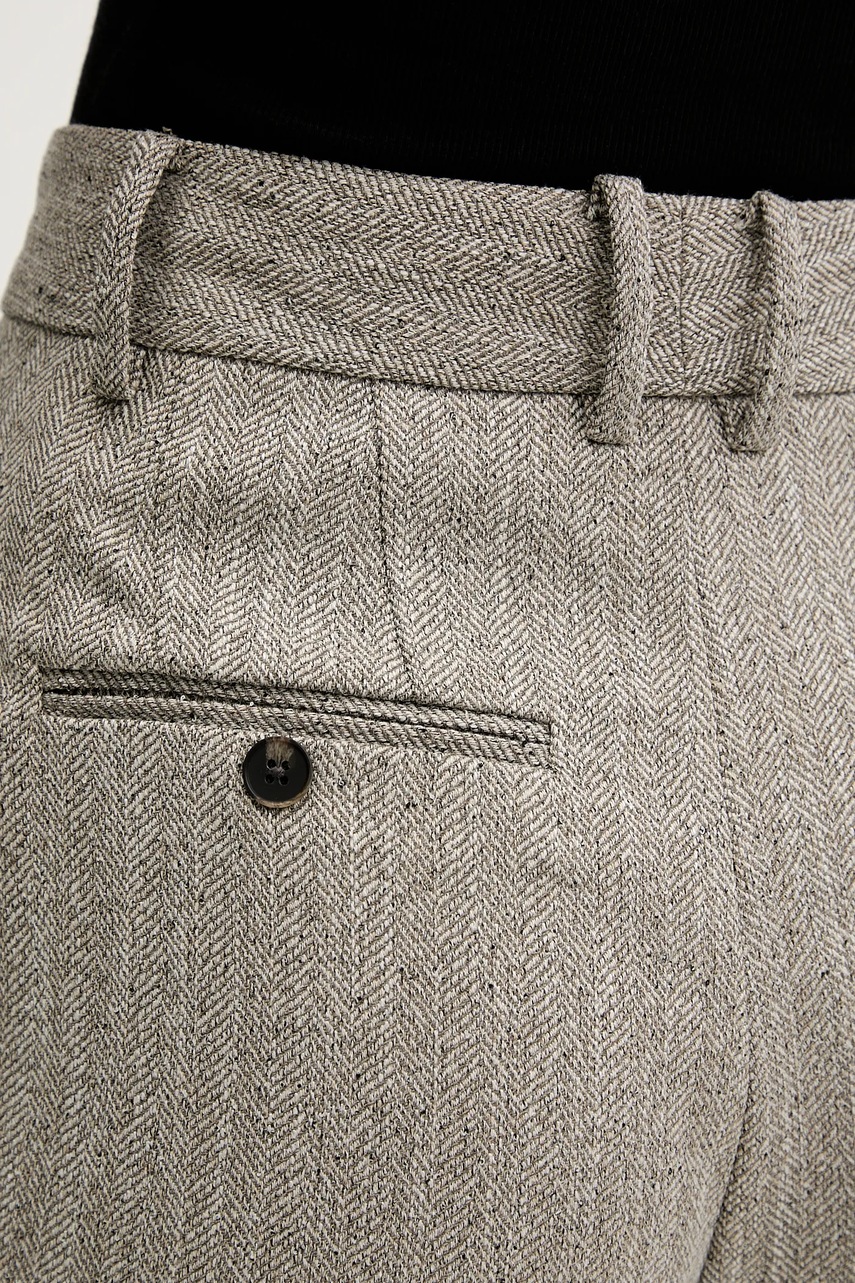 - Model z podwyższoną talią i zapięciem na suwak, guzik i haftkę.