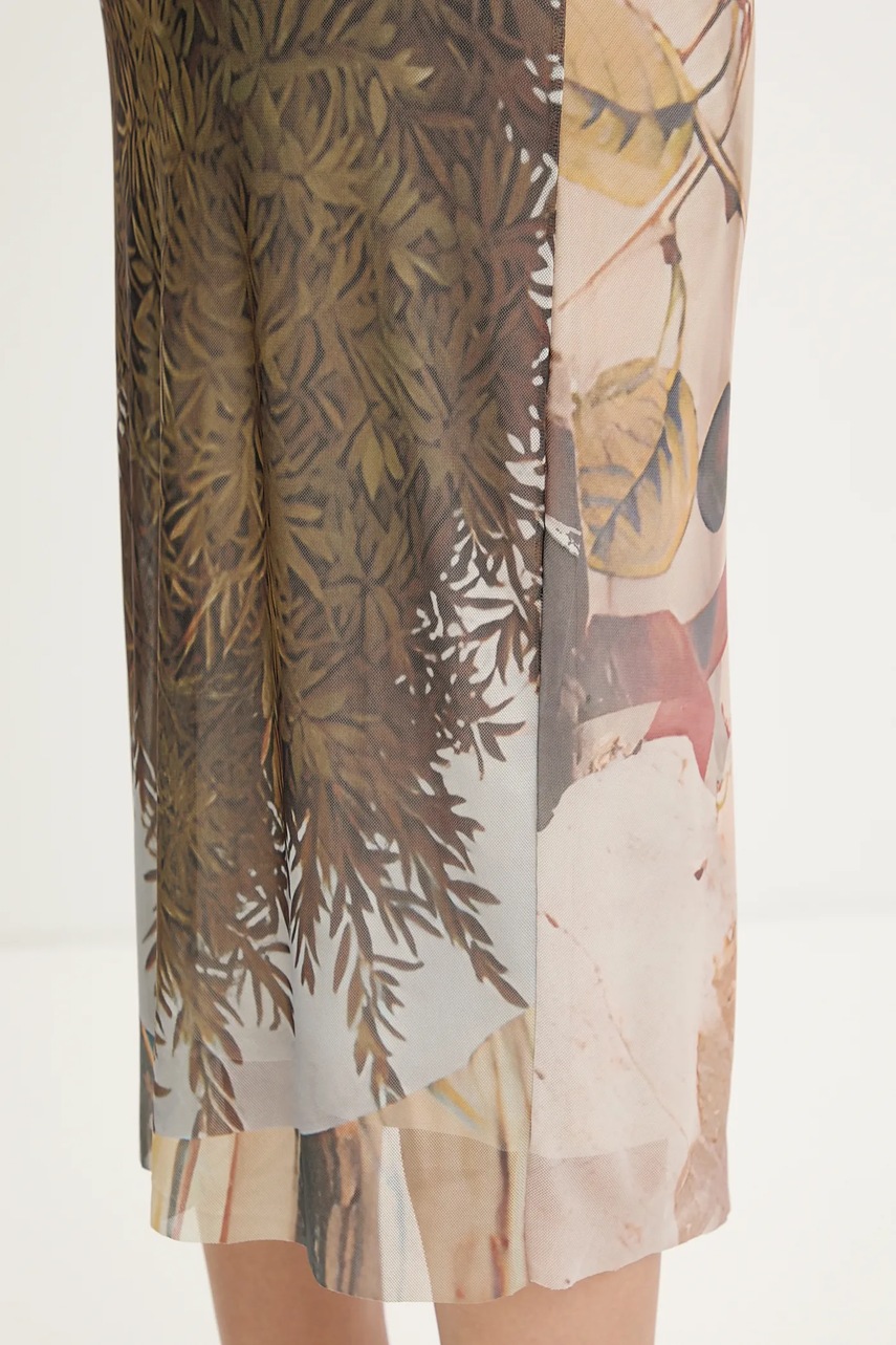 Desigual spódnica COLLAGE kolor brązowy midi prosta 25WWFK05