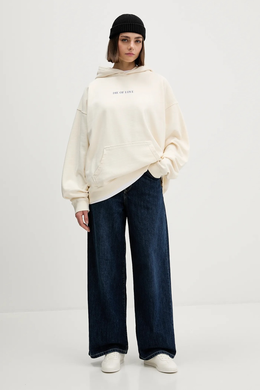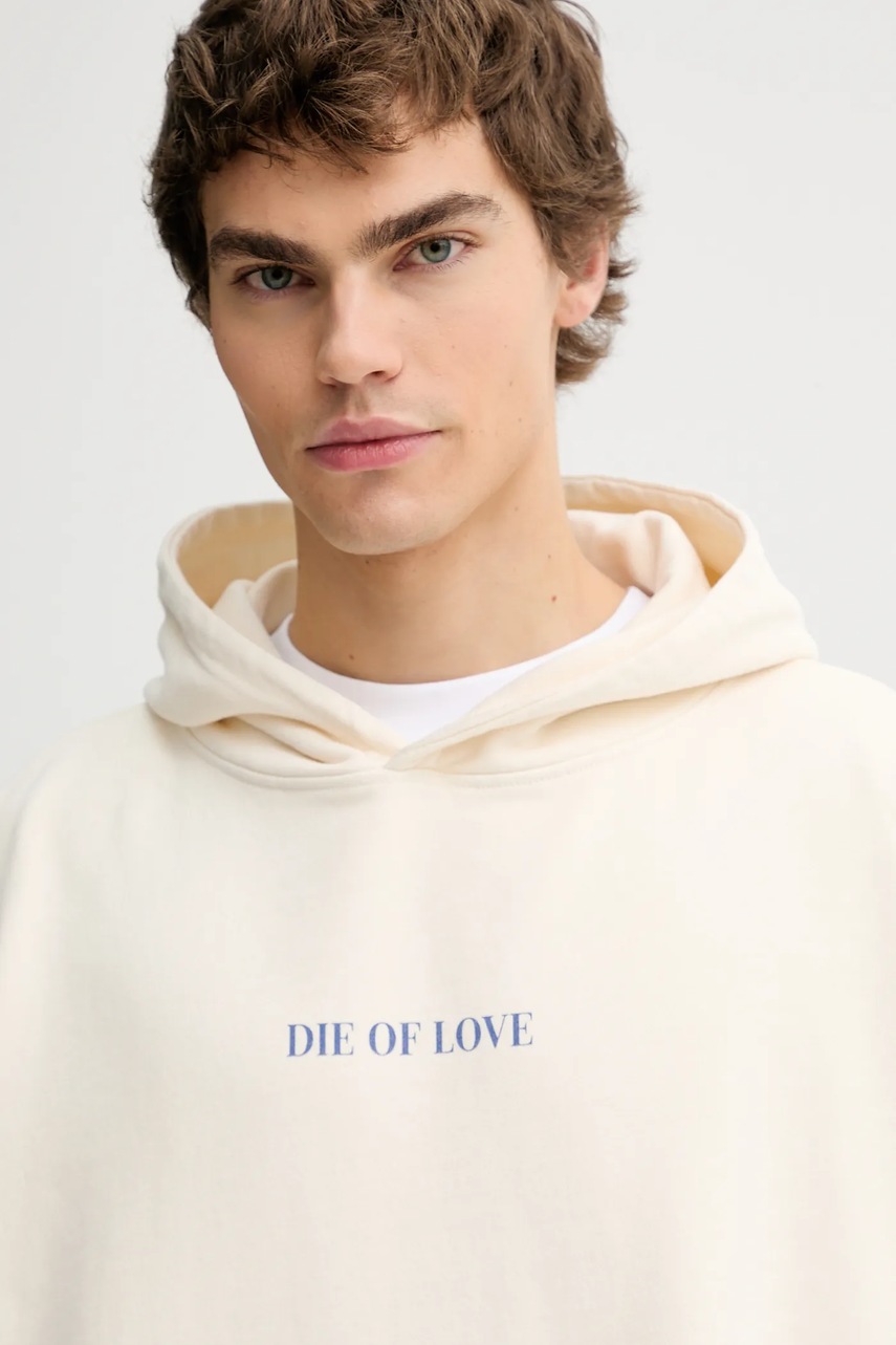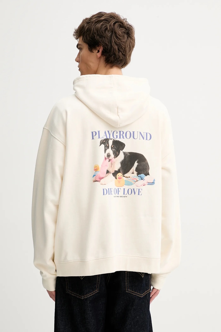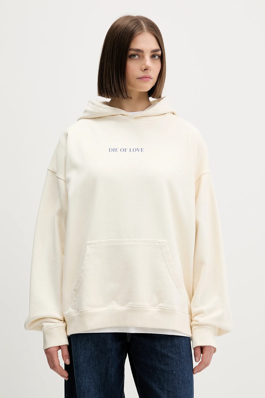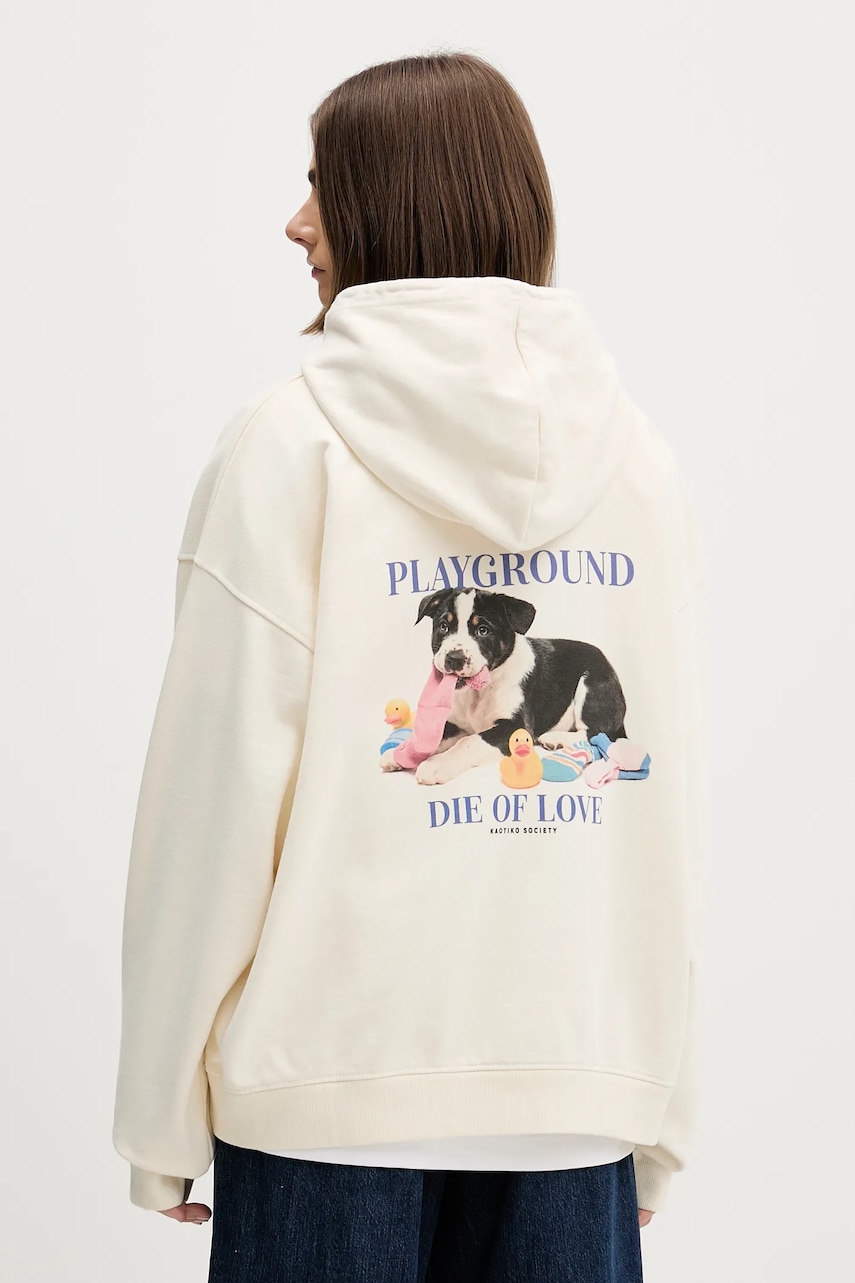 Kaotiko bluza bawełniana kolor beżowy z kapturem z nadrukiem AR057-01-G002