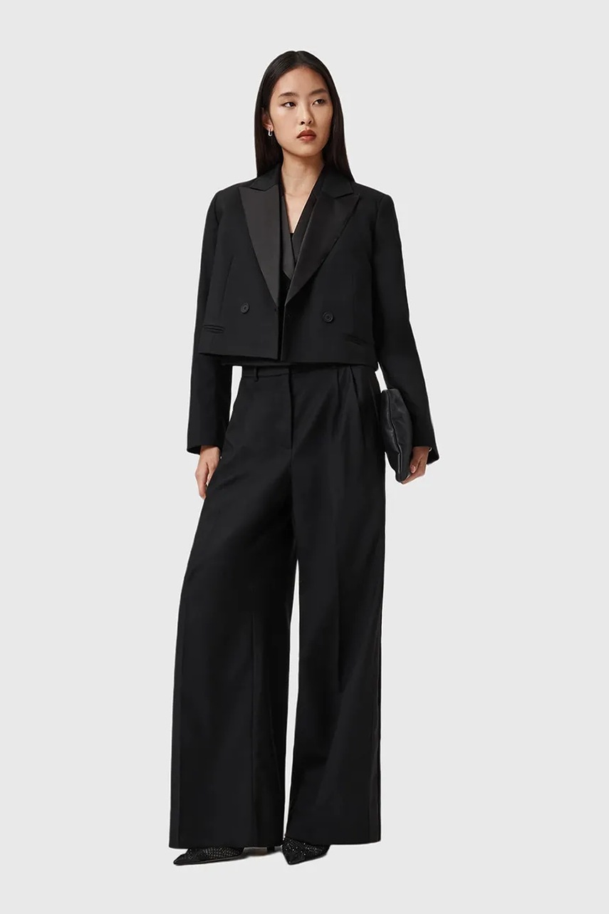 AllSaints kamizelka z dodatkiem wełny kolor czarny jednorzędowa W053QD