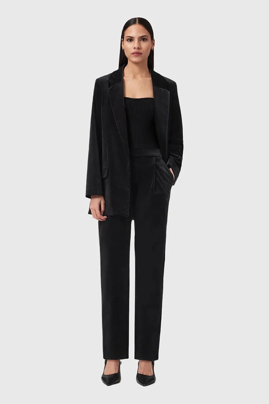 AllSaints marynarka welurowa kolor czarny jednorzędowa gładka W064QD