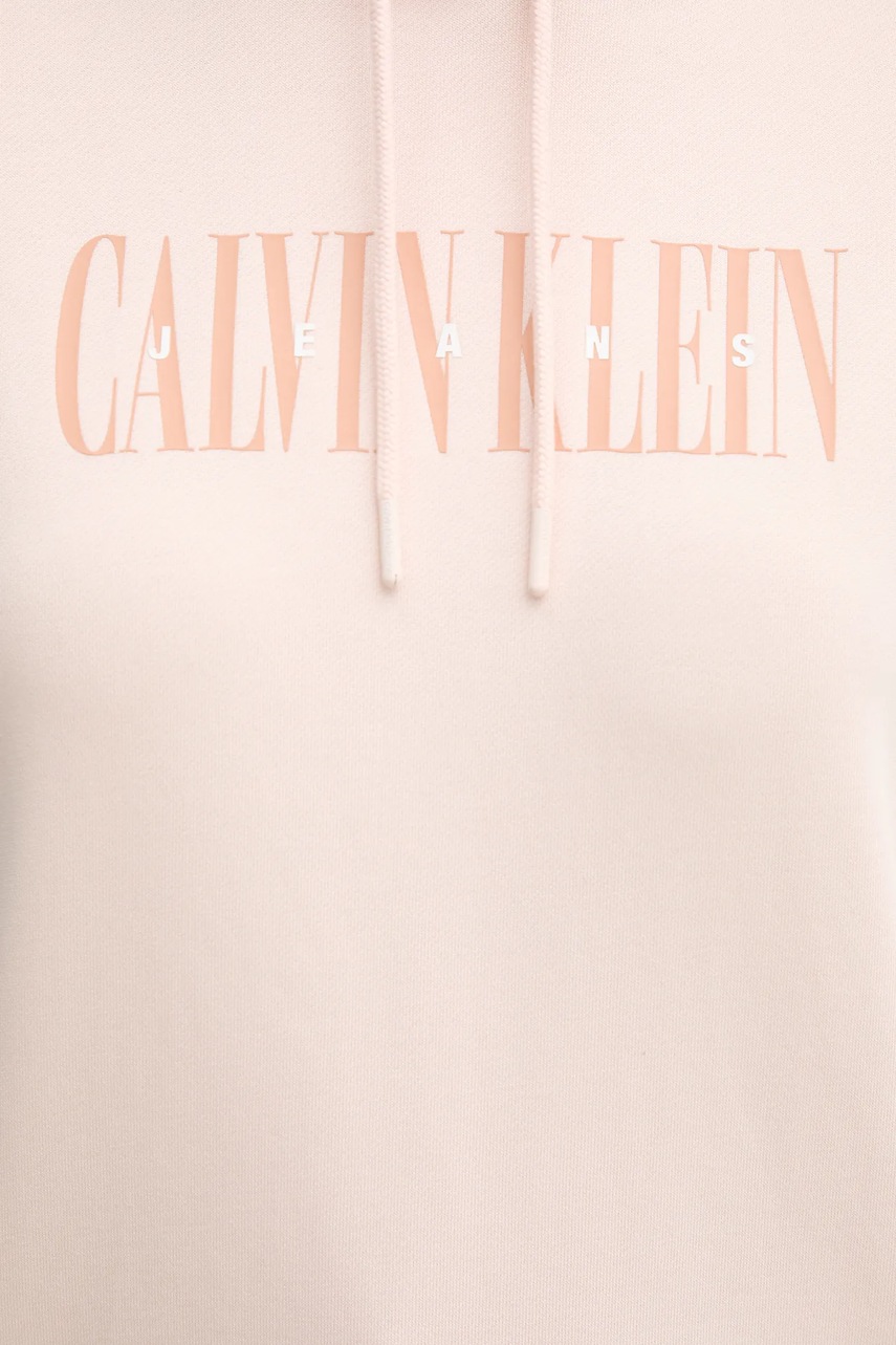 Calvin Klein Jeans bluza bawełniana damska kolor różowy z kapturem z nadrukiem J20J225579