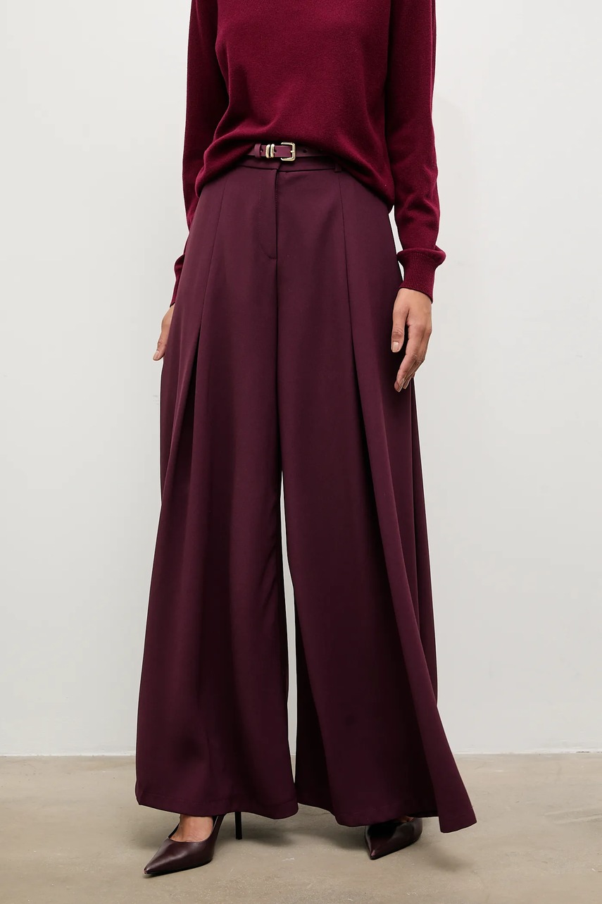 Answear.LAB spodnie damskie kolor bordowy szerokie high waist