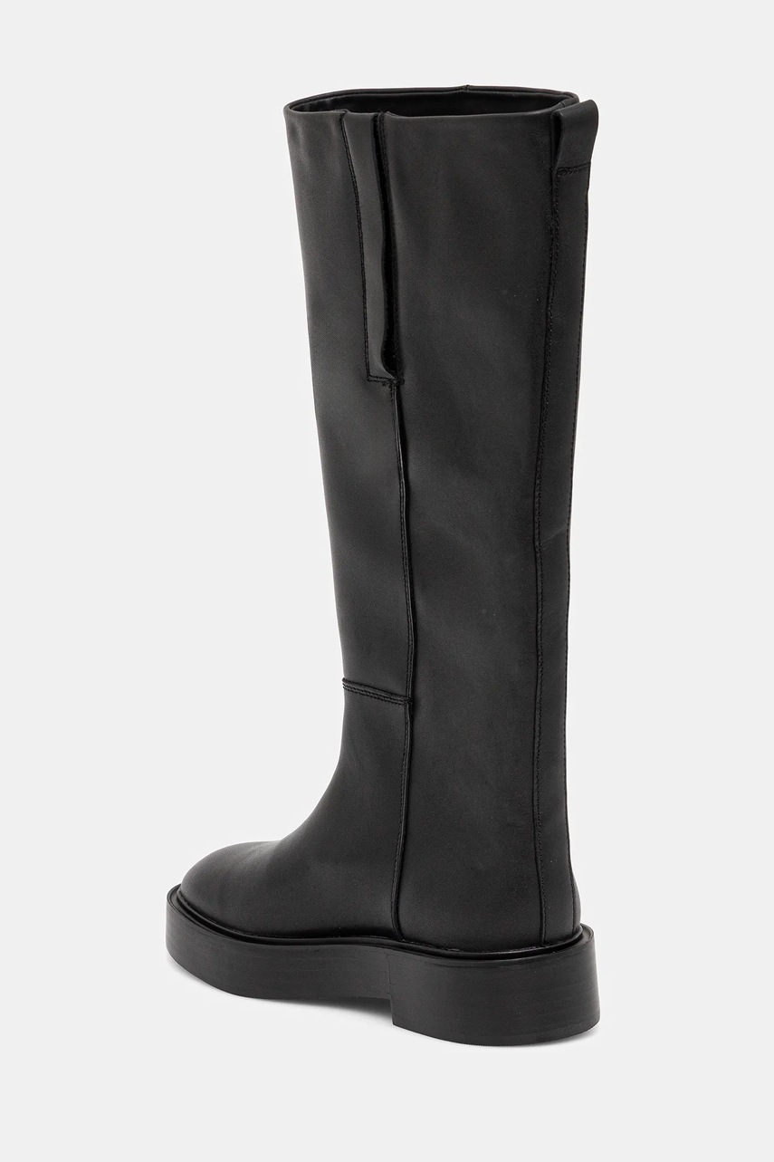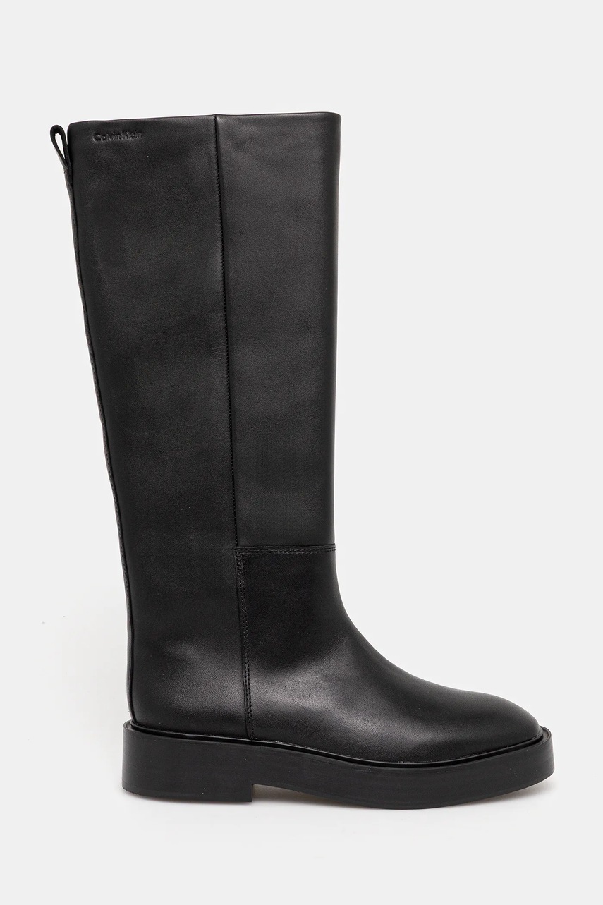 Calvin Klein kozaki skórzane CONCAVE WELT UKT BOOT LTH damskie kolor czarny na płaskim obcasie YW0YW01910