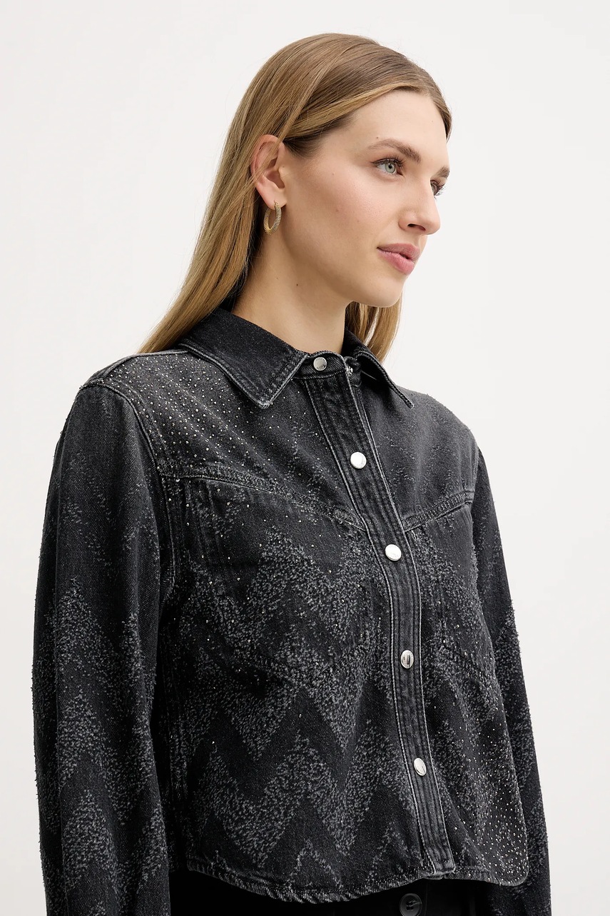 BOSS Orange koszula jeansowa damska kolor szary regular z kołnierzykiem klasycznym 50548445