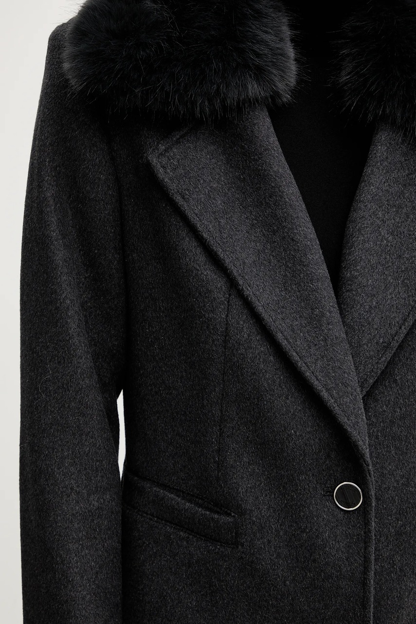 - Model z odpinanym, sztucznym futerkiem.