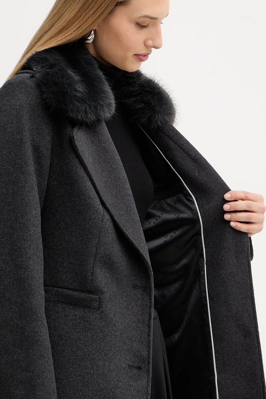 Guess płaszcz z dodatkiem wełny KAROLE kolor szary W5BL19 W2642
