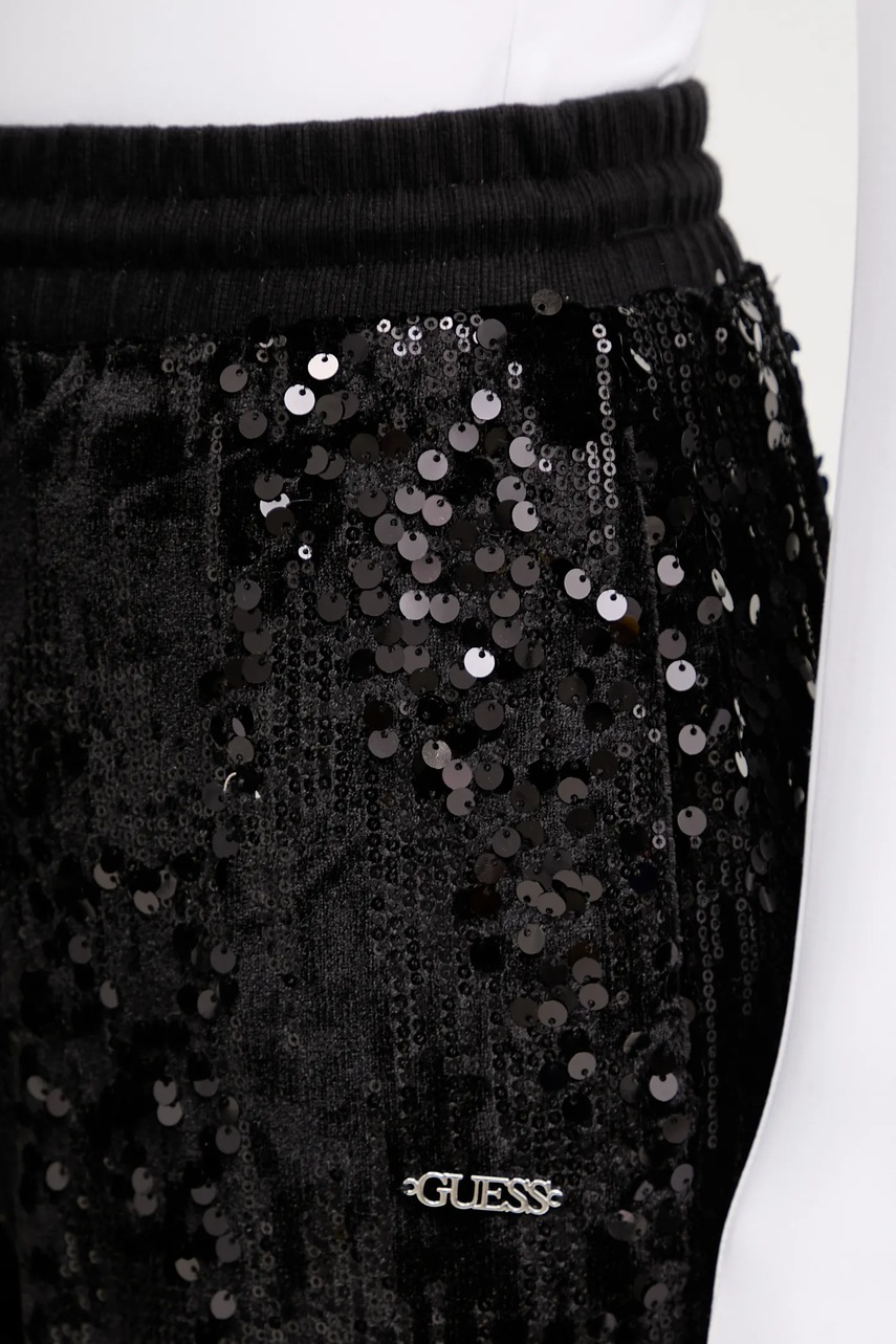 Guess spodnie dresowe welurowe damskie kolor czarny z aplikacją V5BB01 K1922