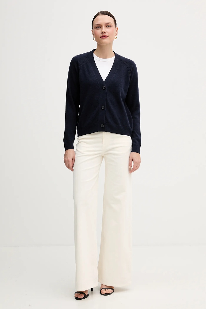 Sisley kardigan z dodatkiem wełny damski kolor granatowy lekki 102HM602Q