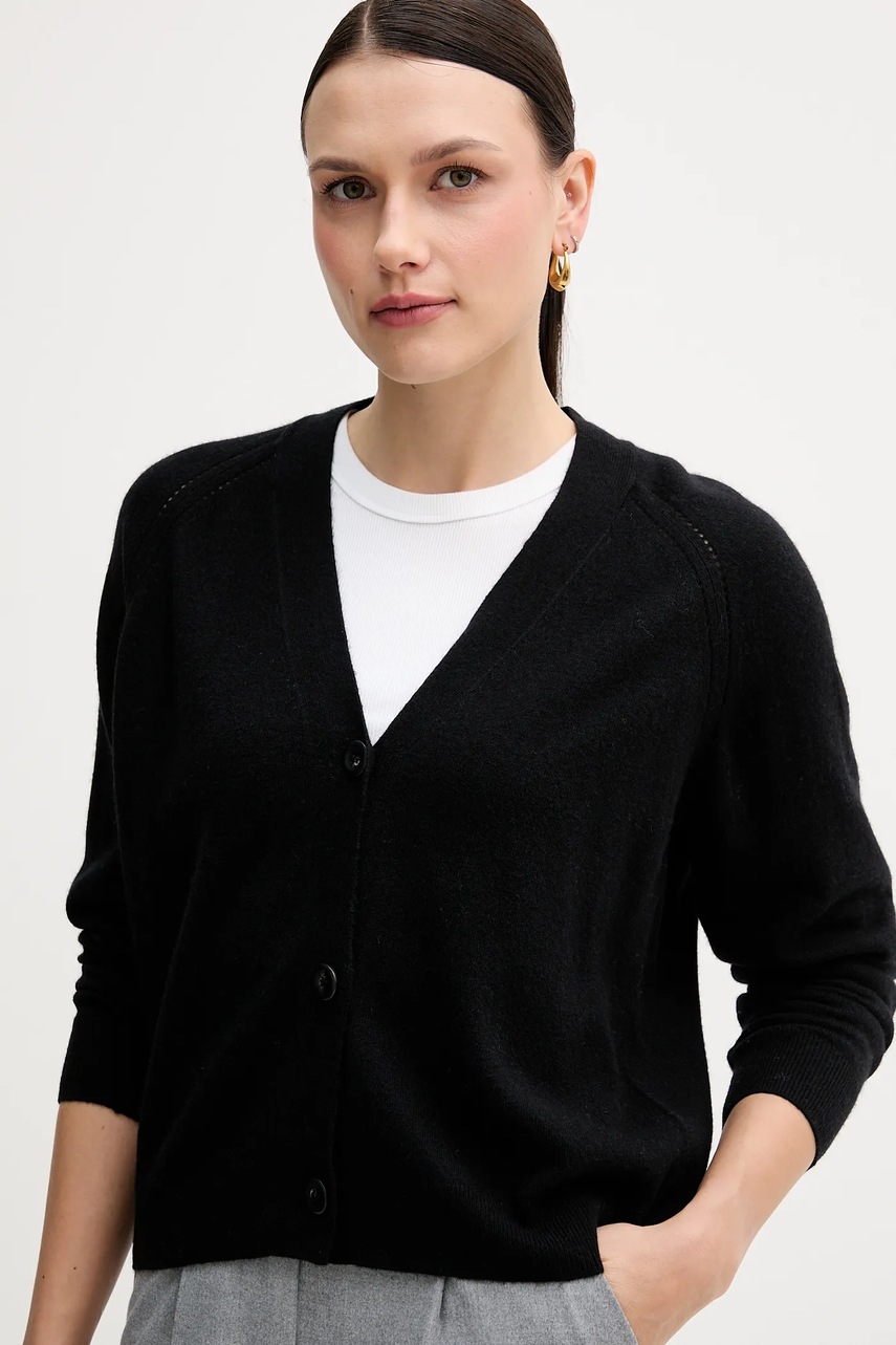 Sisley kardigan z dodatkiem wełny damski kolor czarny lekki 102HM602Q