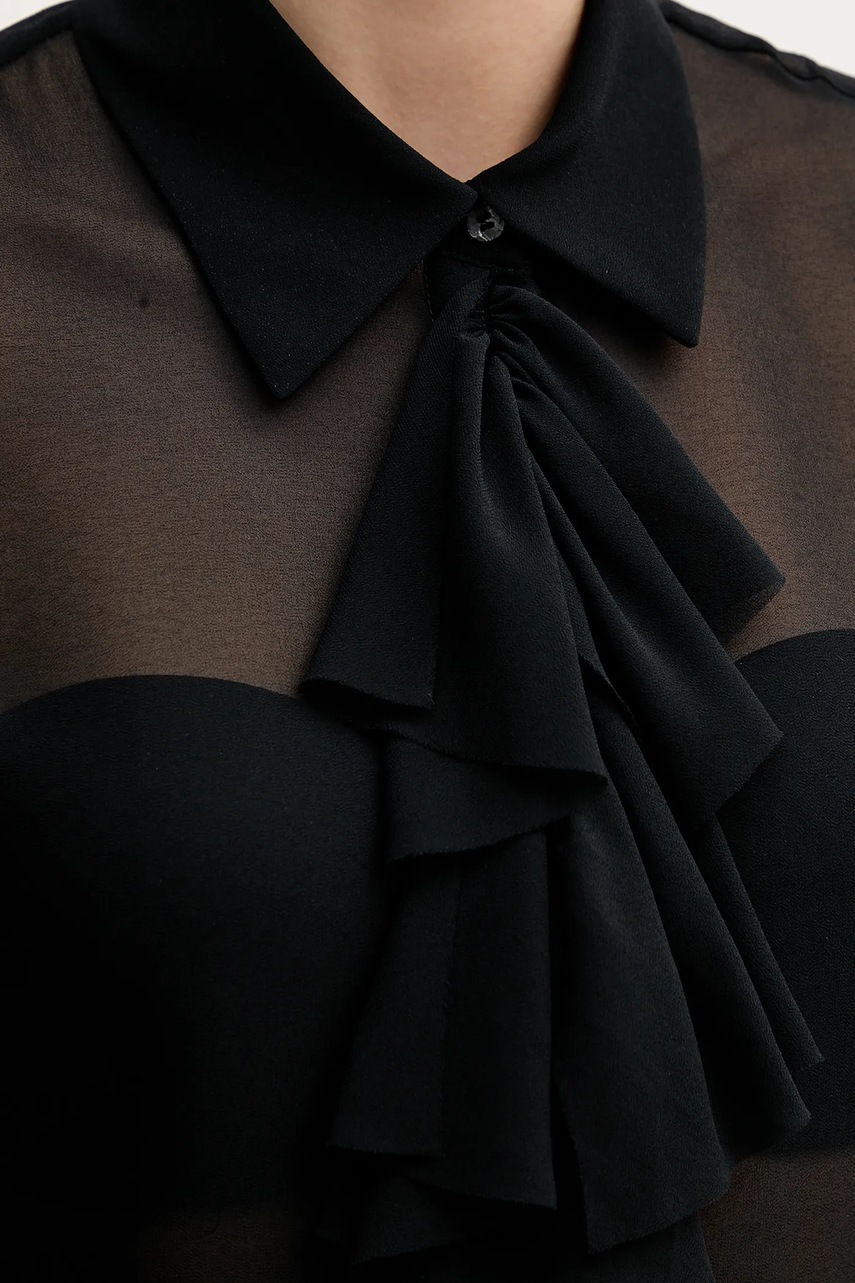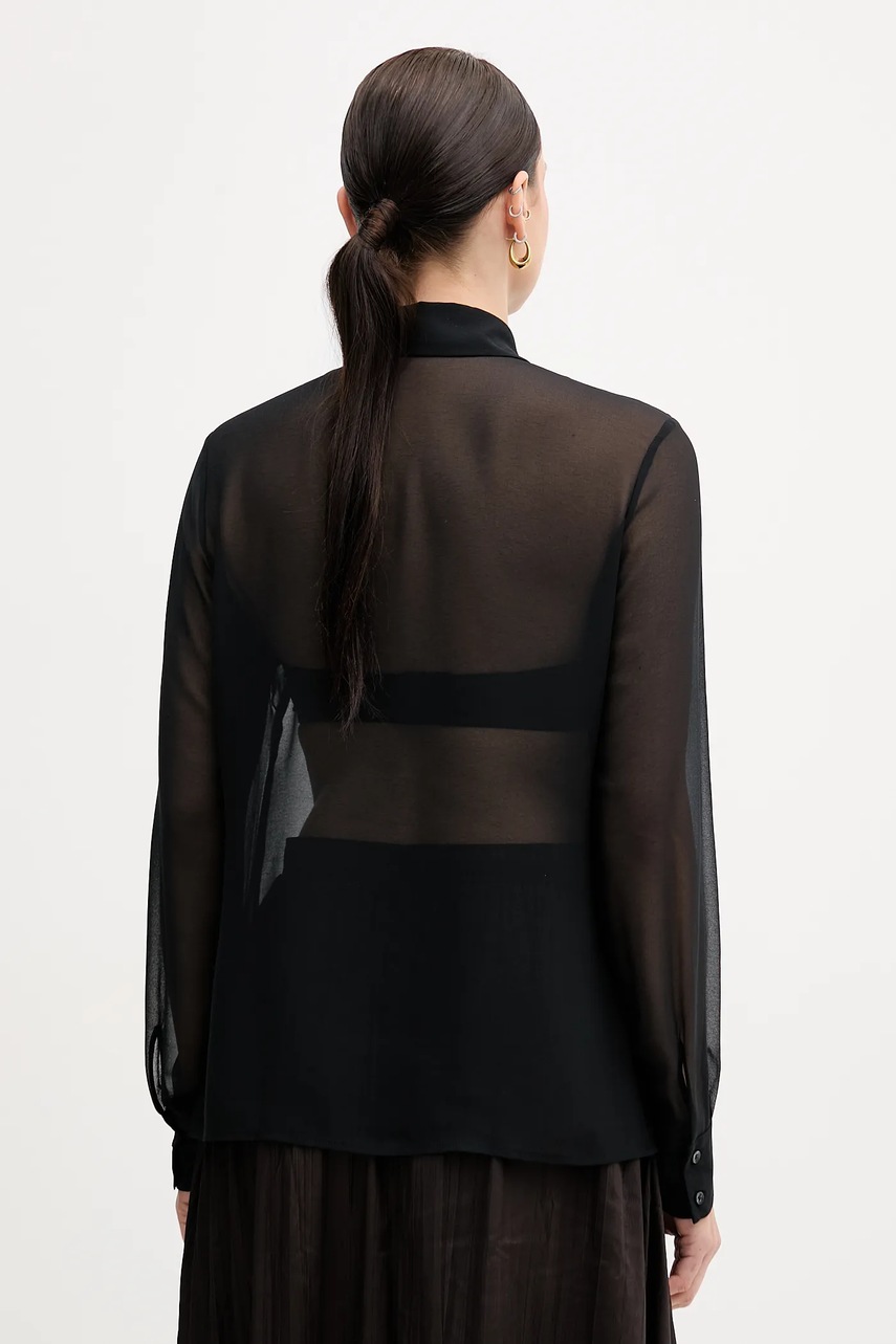 Sisley koszula damska kolor czarny regular z kołnierzykiem klasycznym 5NOXLQ09T