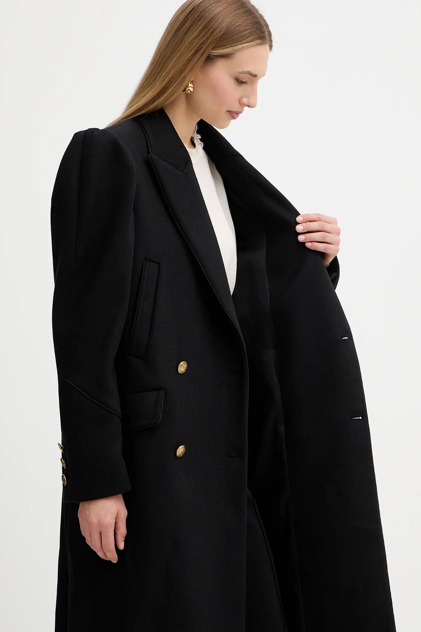 Twinset płaszcz z dodatkiem wełny kolor czarny 252TS2310