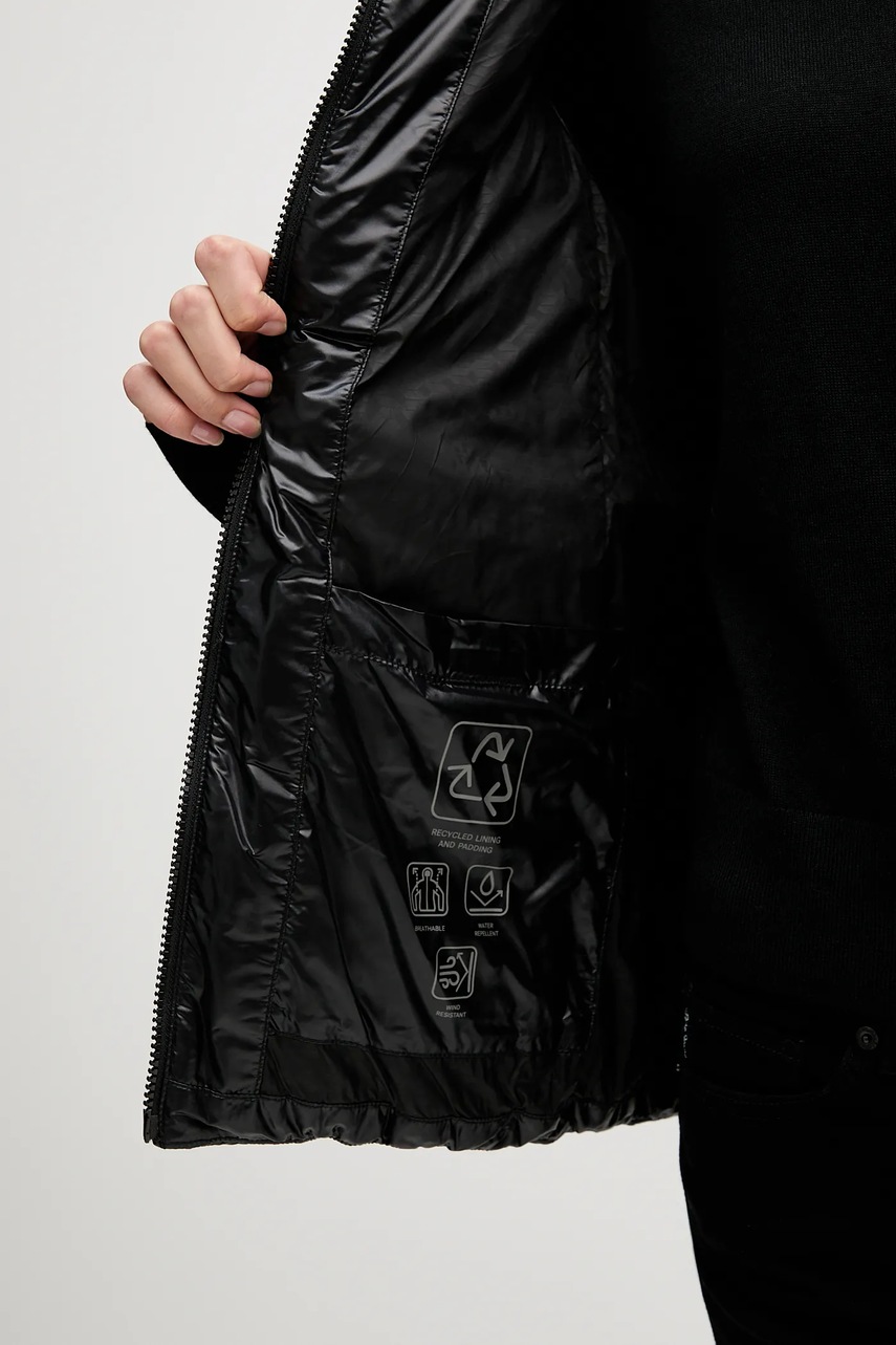 - Hydrofobowe wykończenie materiału wierzchniego nie pozwala dostać się wilgoci do wewnątrz, dzięki czemu dobrze chroni przed niekorzystnymi warunkami atmosferycznymi.