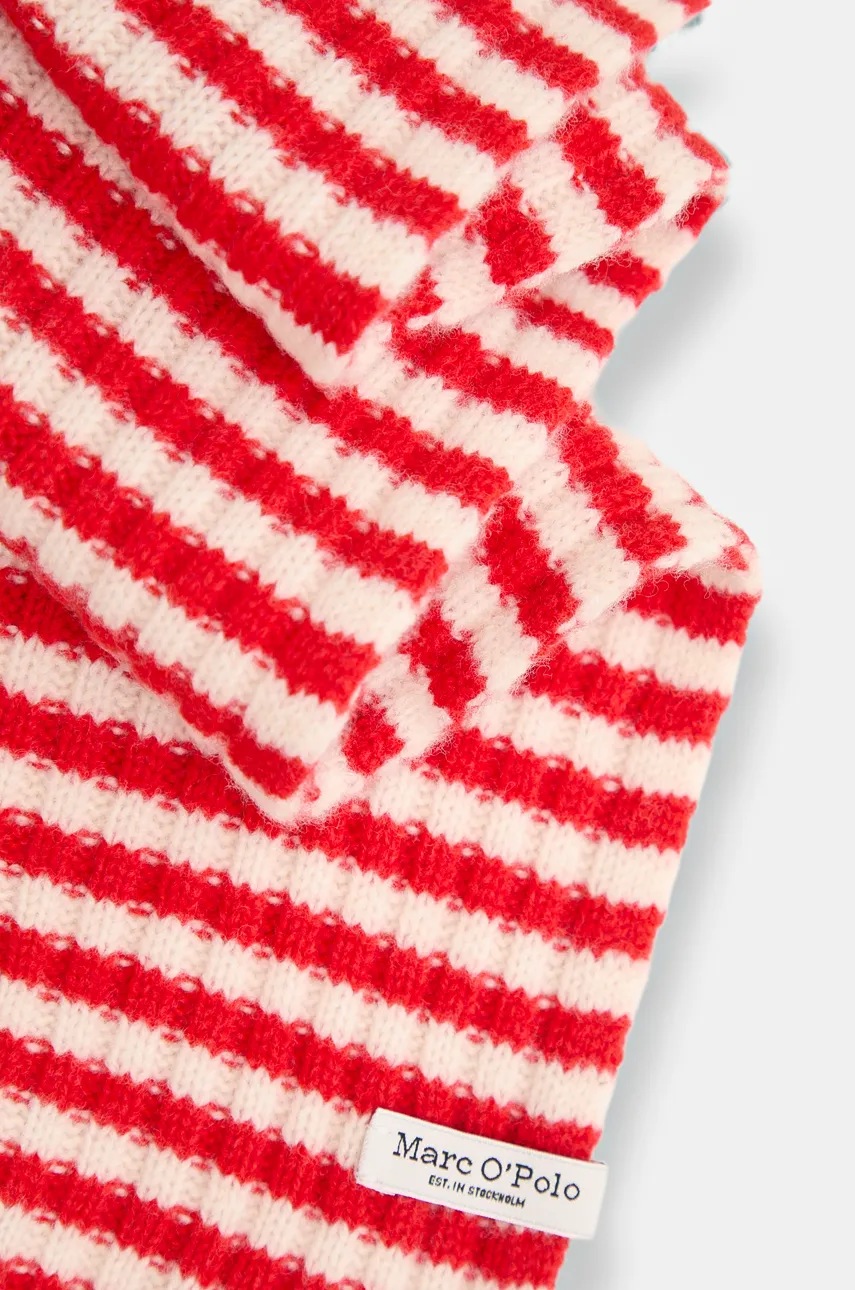 Marc O'Polo szalik wełniany damski kolor czerwony wzorzysty 600605402123