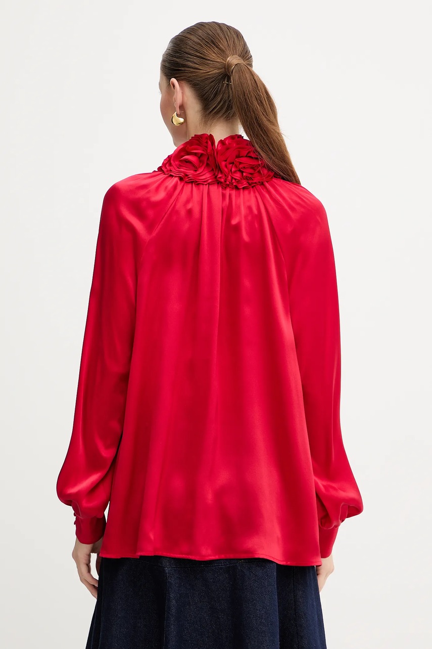 Luisa Spagnoli bluzka jedwabna damska kolor czerwony z aplikacją 542316