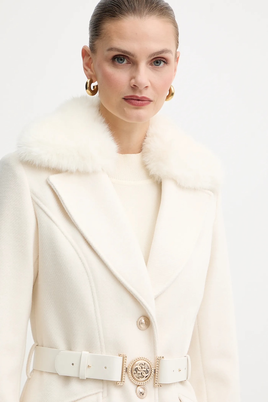 Guess płaszcz z domieszką wełny NEW PATRICE kolor beżowy W5BL25 W2672