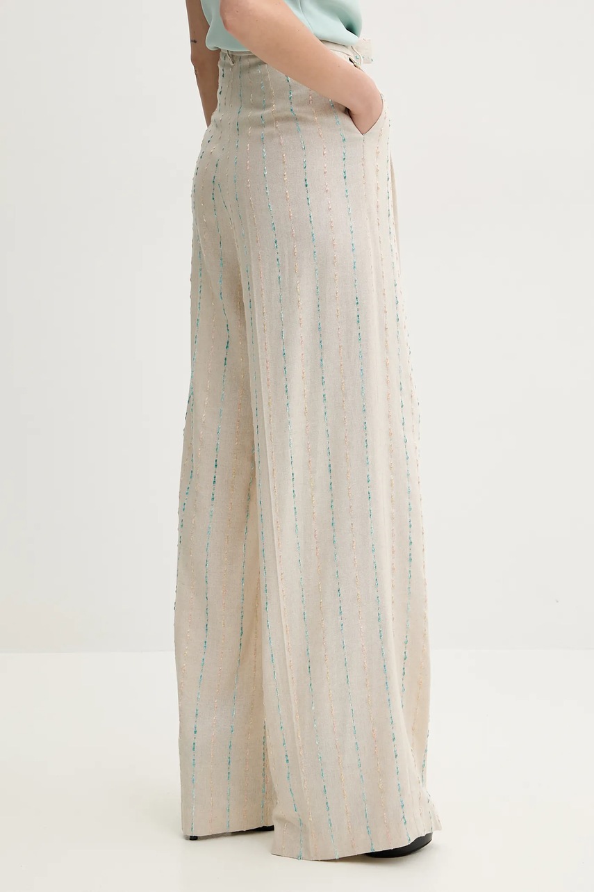 Fracomina spodnie z domieszką lnu kolor beżowy szerokie high waist FS25SV3007W788N8