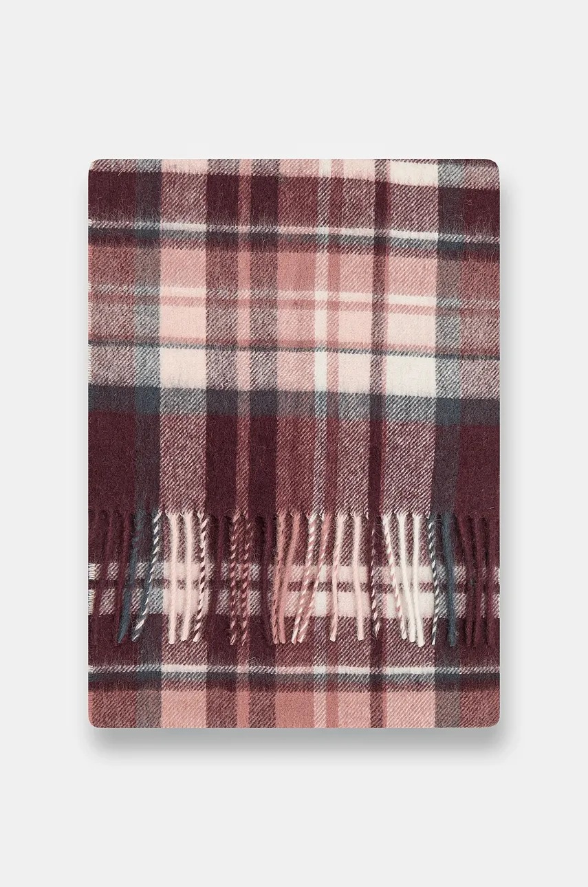 Barbour szalik wełniany damski kolor bordowy wzorzysty LSC0109