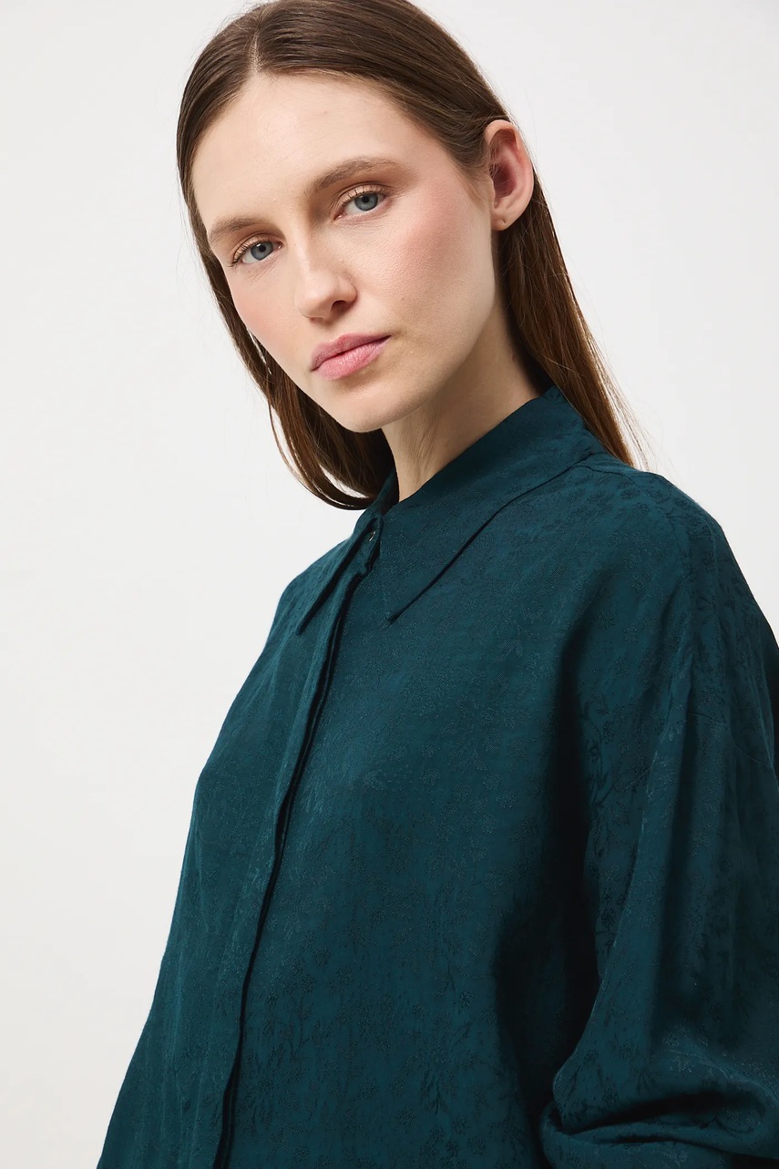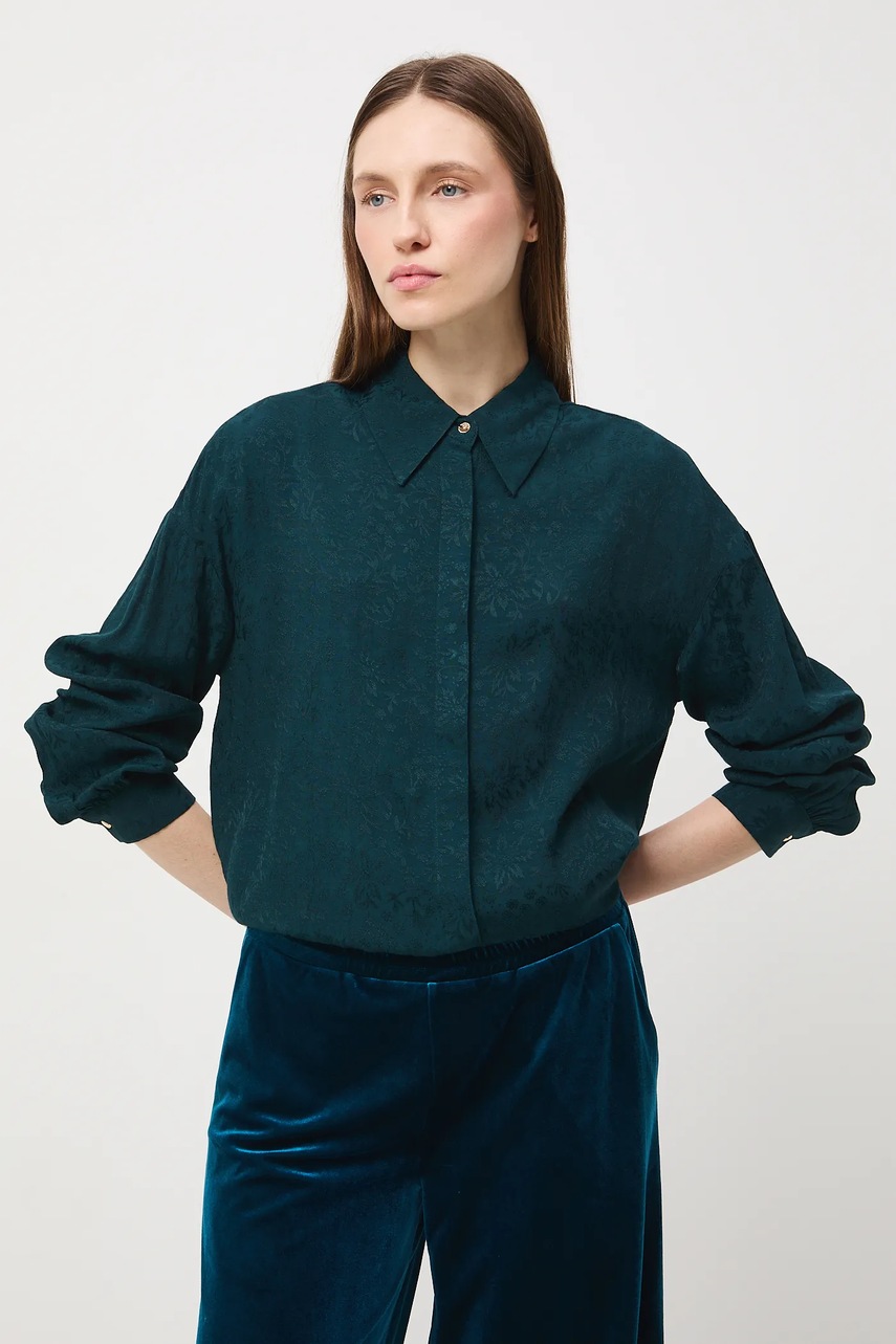 Medicine koszula damska kolor zielony regular z kołnierzykiem klasycznym