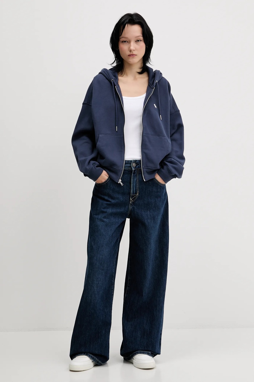 Abercrombie & Fitch bluza damska kolor niebieski z kapturem gładka KI152-5417-200