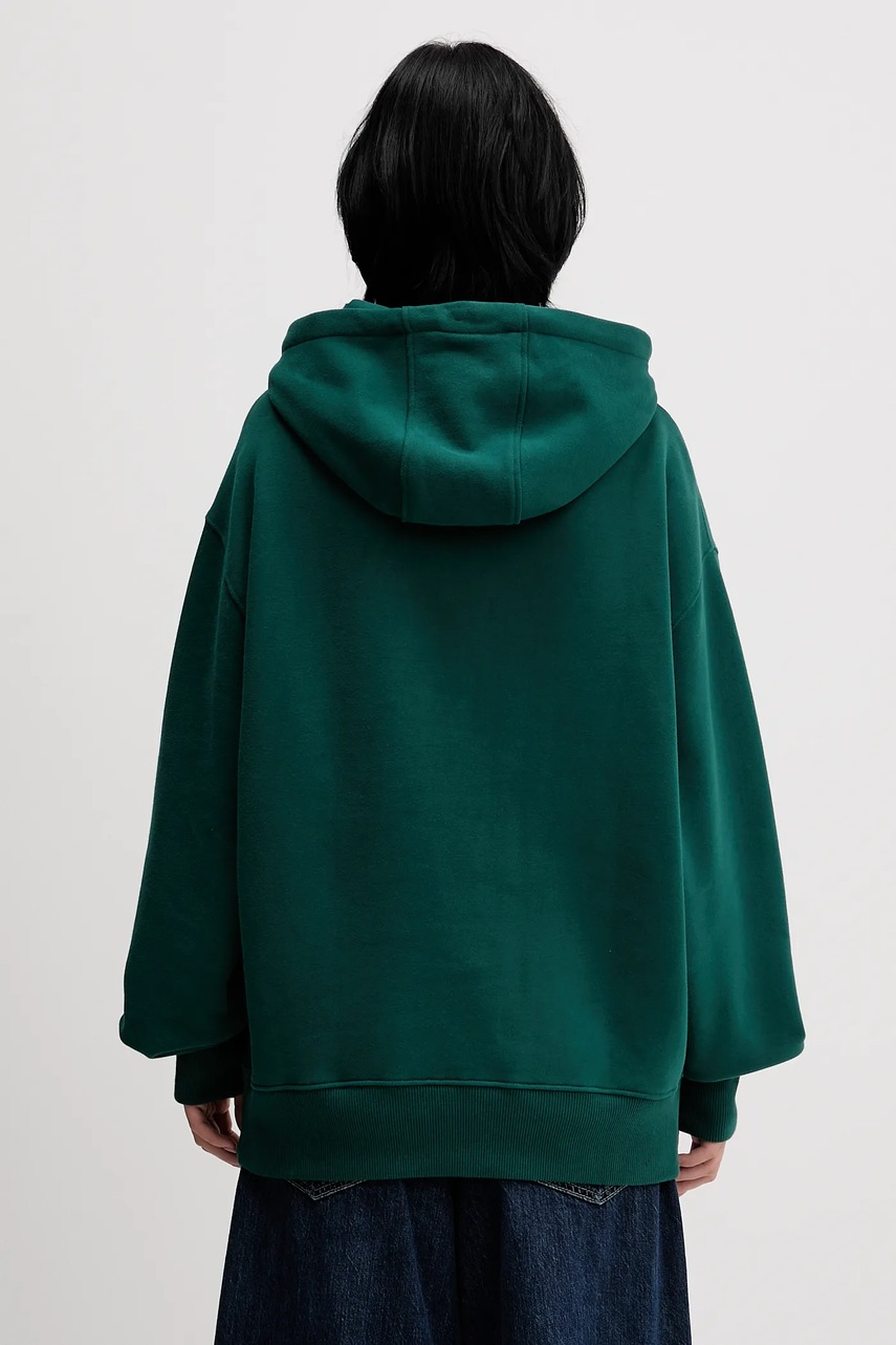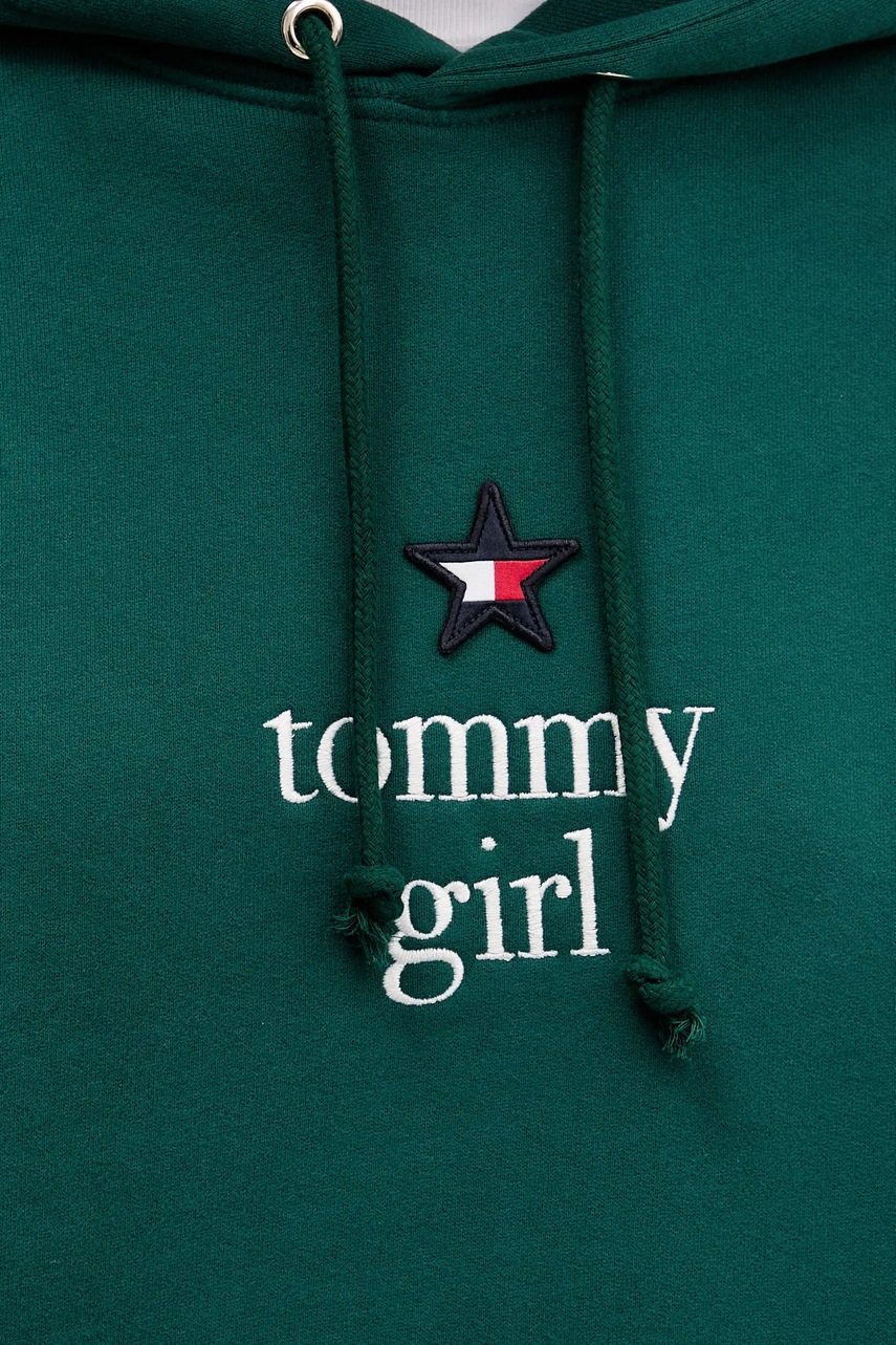 Tommy Jeans bluza bawełniana damska kolor zielony z kapturem z aplikacją DN0DN00099