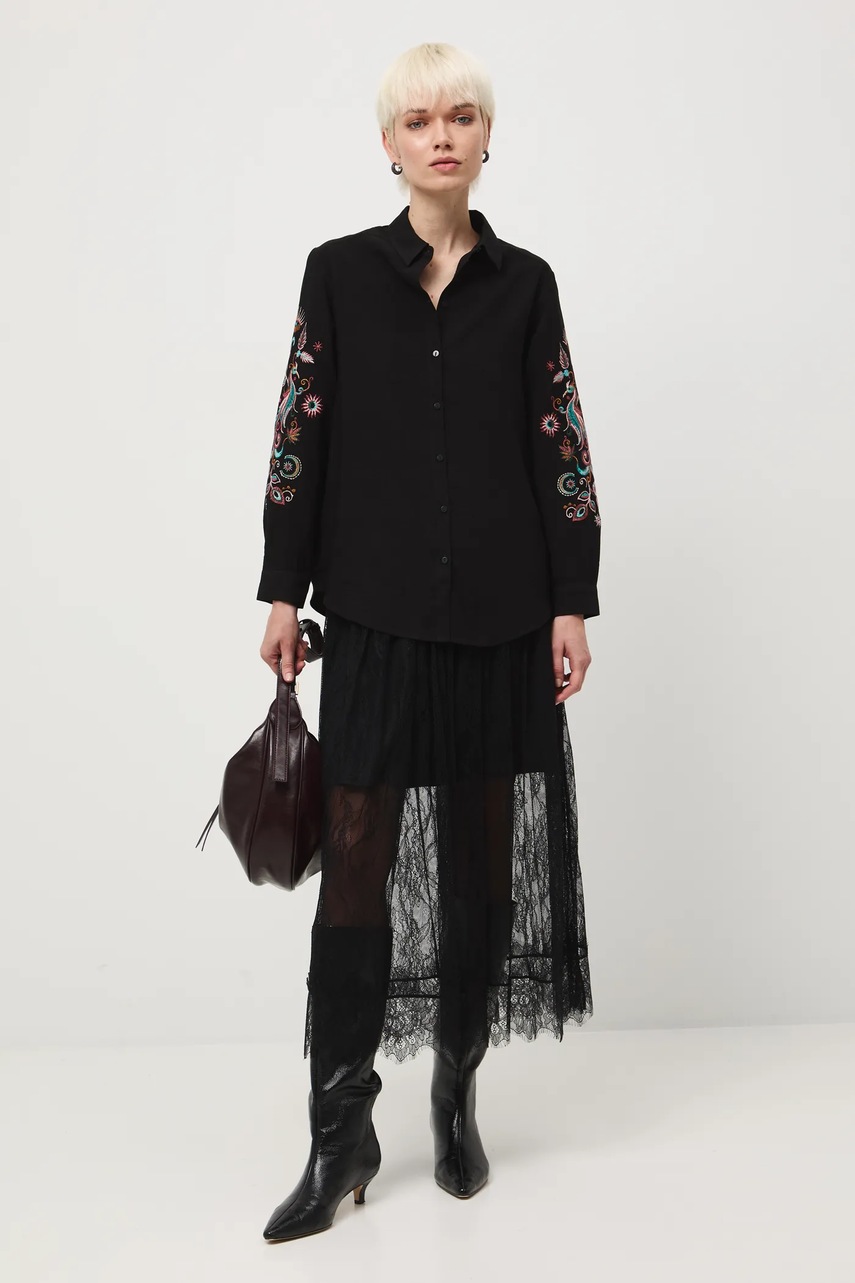 Medicine koszula damska kolor czarny regular z kołnierzykiem klasycznym