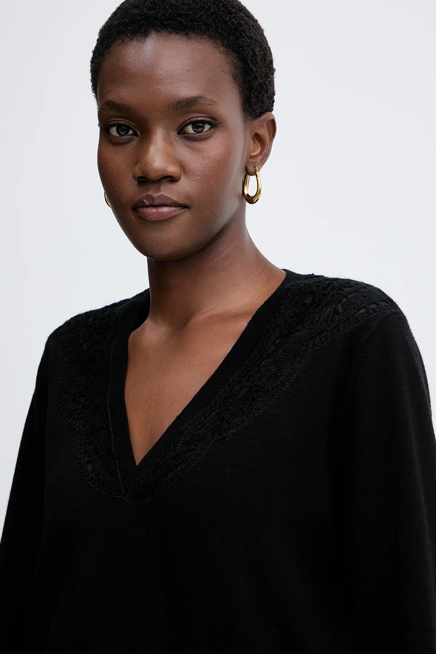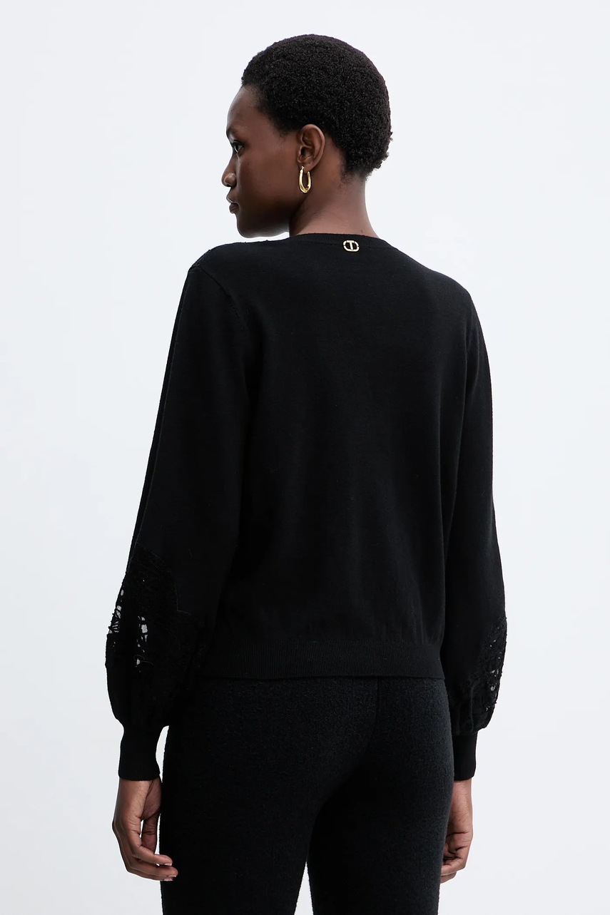 Twinset sweter z domieszką wełny damski kolor czarny 252TT3440