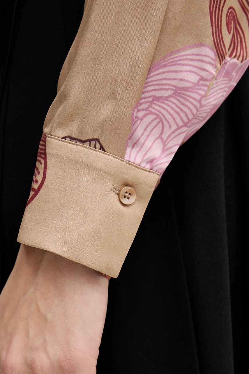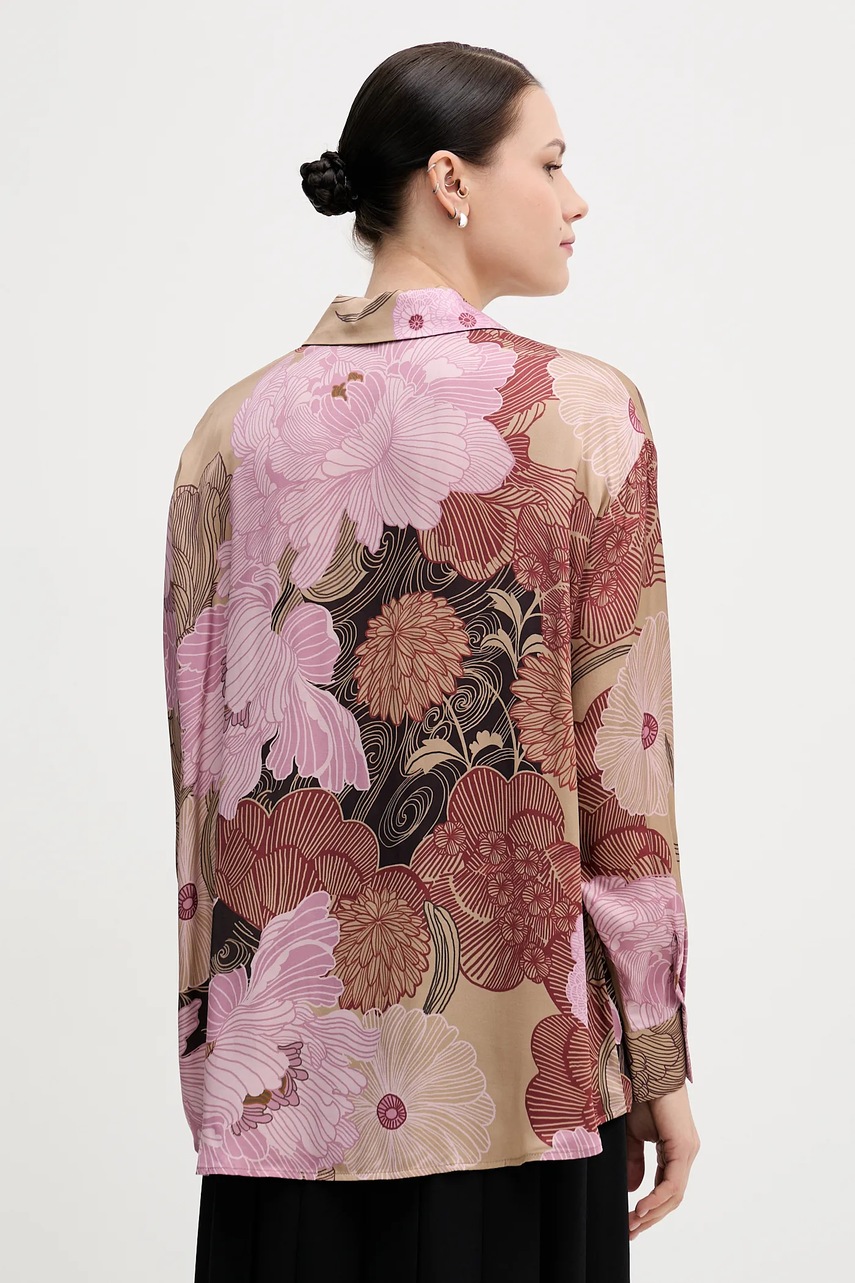 Sisley koszula damska kolor beżowy relaxed z kołnierzykiem klasycznym 5IBNLQ07F