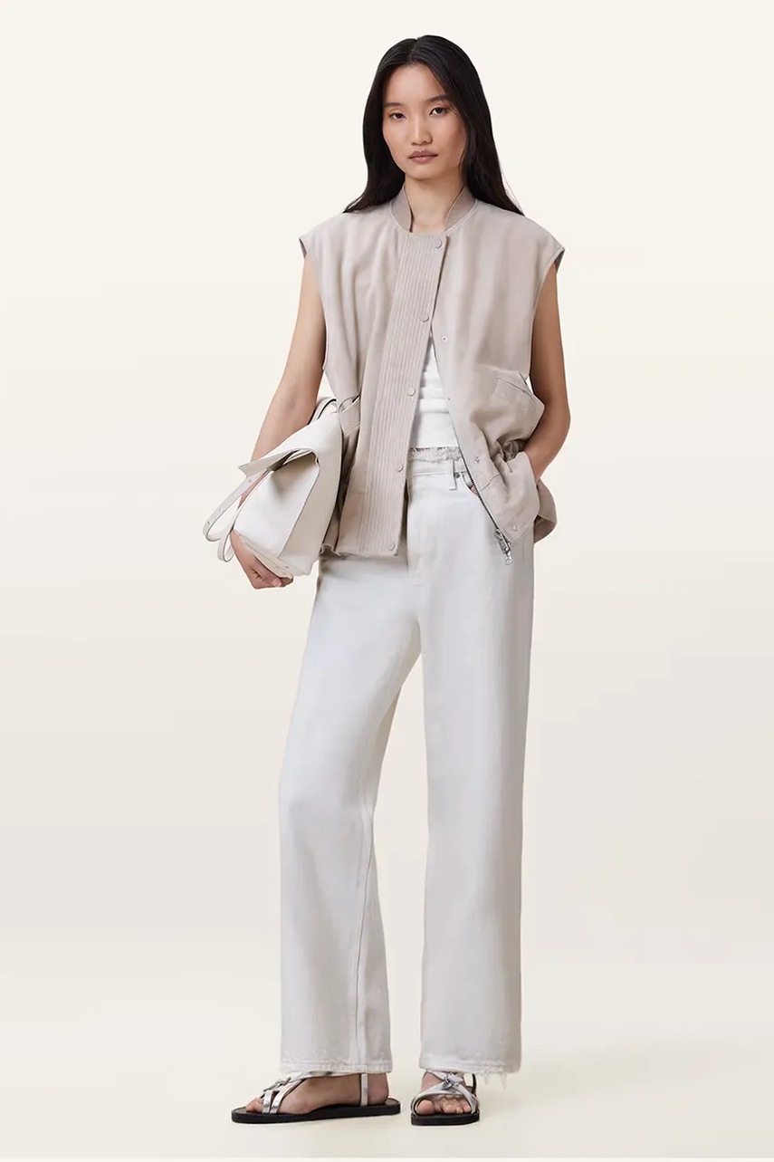AllSaints spodnie bawełniane BLAKE damskie kolor biały szerokie medium waist W091EC
