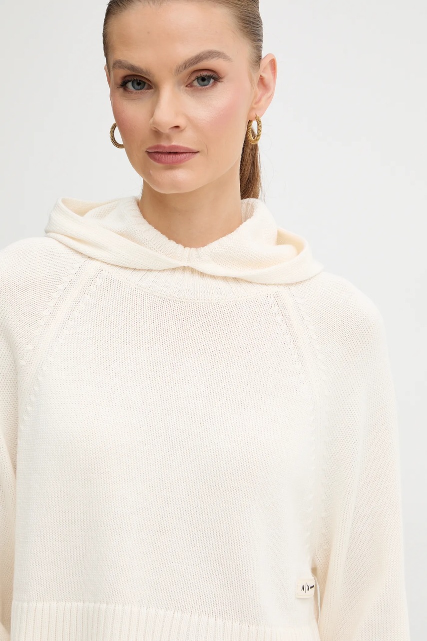 Armani Exchange sweter z dodatkiem wełny damski kolor beżowy lekki z półgolfem XW000767 AF13774