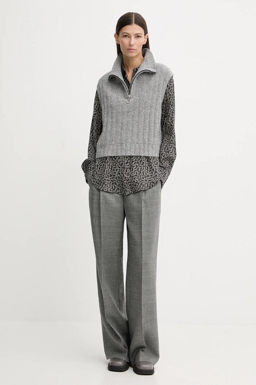 Marc O'Polo spodnie wełniane damskie kolor szary proste high waist 600006810005