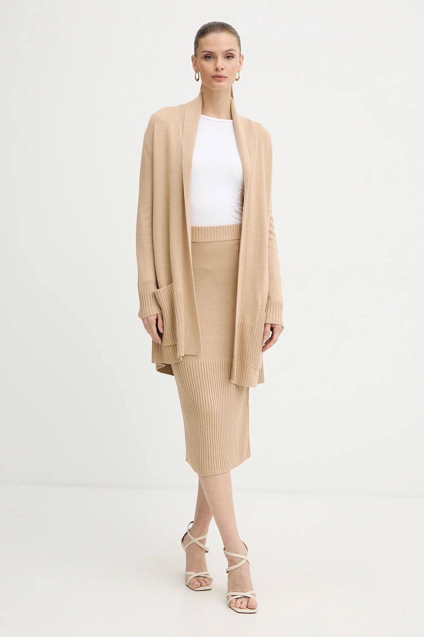 Armani Exchange spódnica z dodatkiem wełny kolor beżowy midi ołówkowa XW001309 AF13774