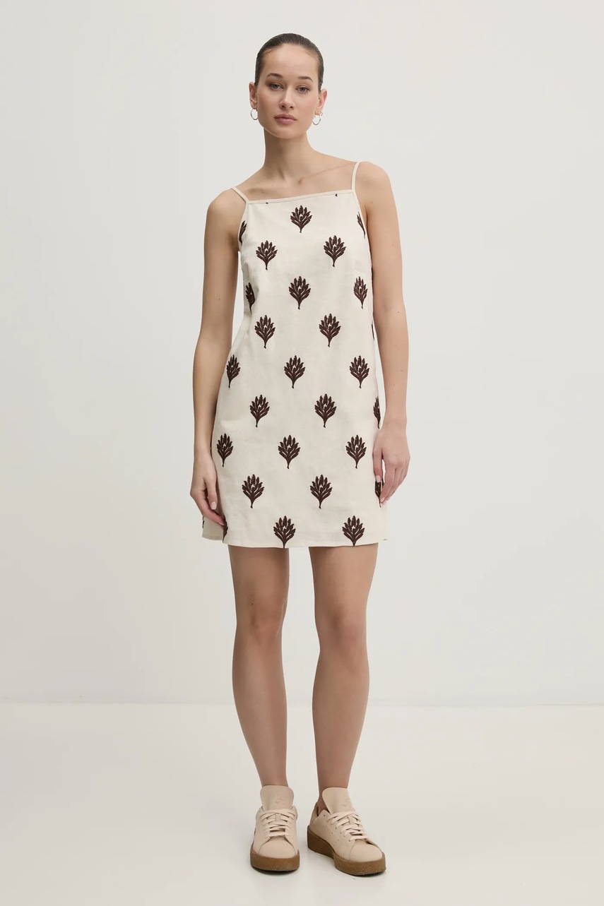 Abercrombie & Fitch sukienka lniana kolor beżowy mini prosta KI159-5661