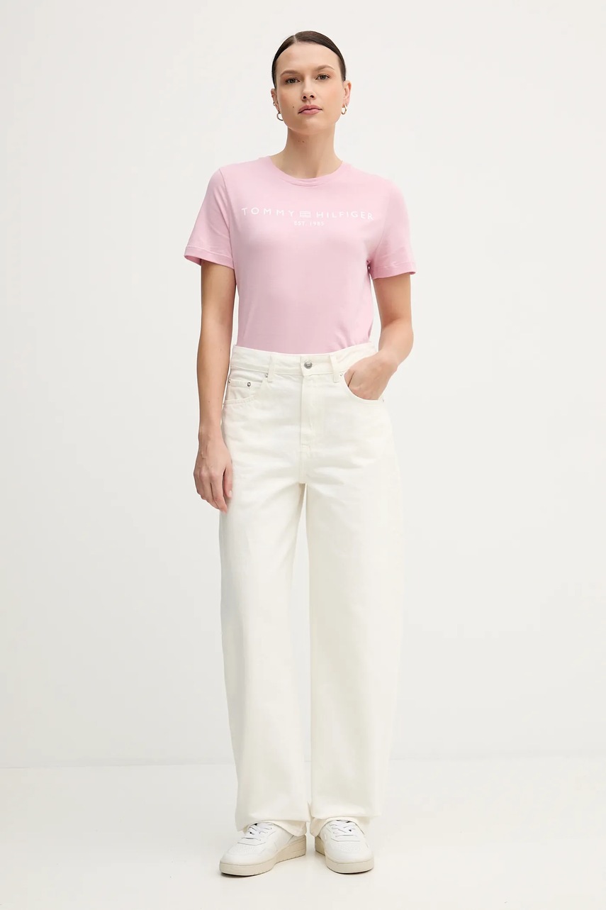 Tommy Hilfiger t-shirt bawełniany damski kolor różowy WW0WW40276
