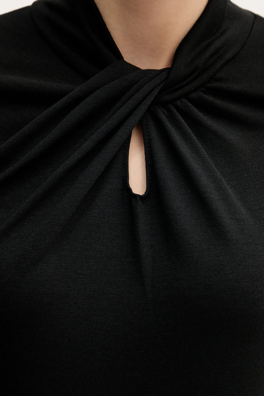 - Model z ozdobnymi marszczeniami.