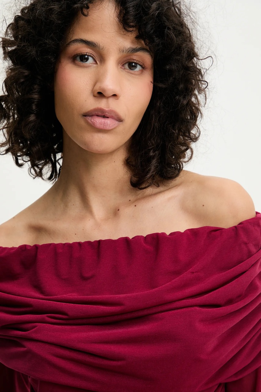 Never Fully Dressed bluzka Diaz damska kolor bordowy gładka NFDTO1669