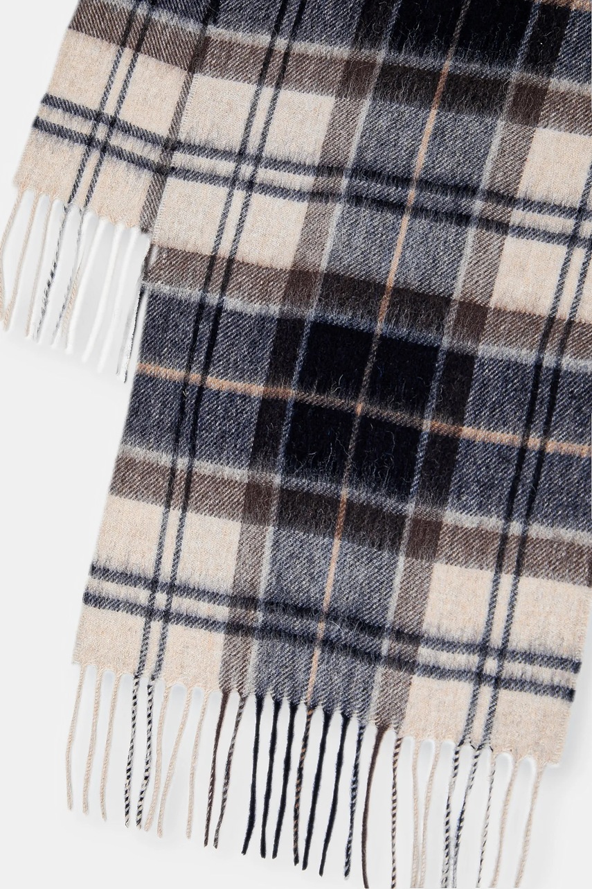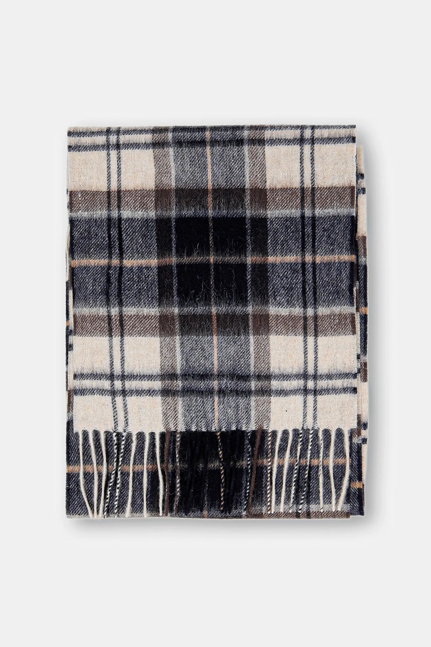 Barbour szalik wełniany kolor brązowy wzorzysty