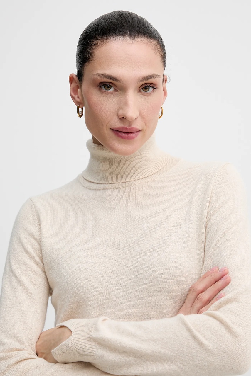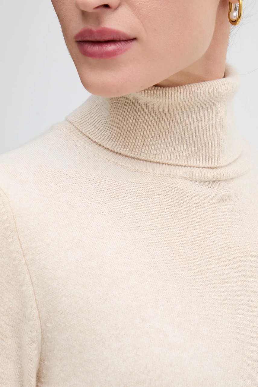 Sisley sweter z domieszką wełny damski kolor beżowy lekki z golfem 102HM2174