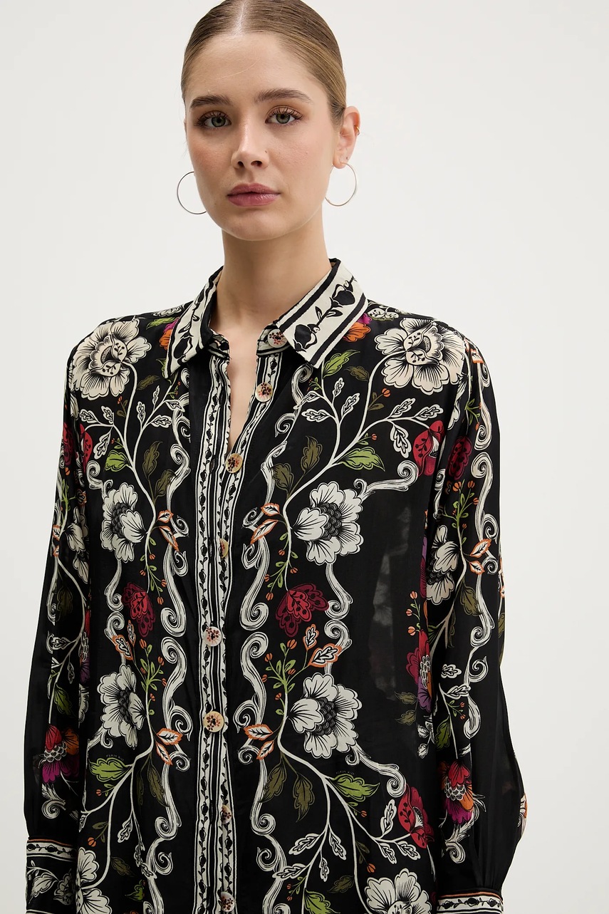 Farm Rio koszula damska kolor czarny relaxed z kołnierzykiem klasycznym 350099