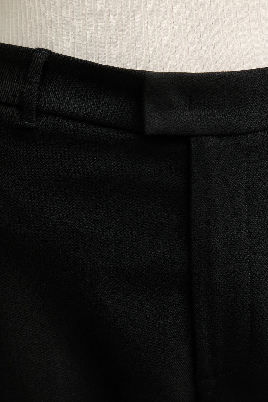 - Model z podwyższoną talią i zapięciem na suwak, guzik i haftkę.