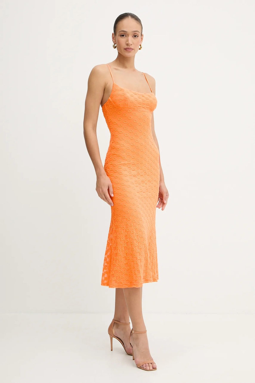 Bardot sukienka ADONI kolor pomarańczowy maxi dopasowana 57998DB1