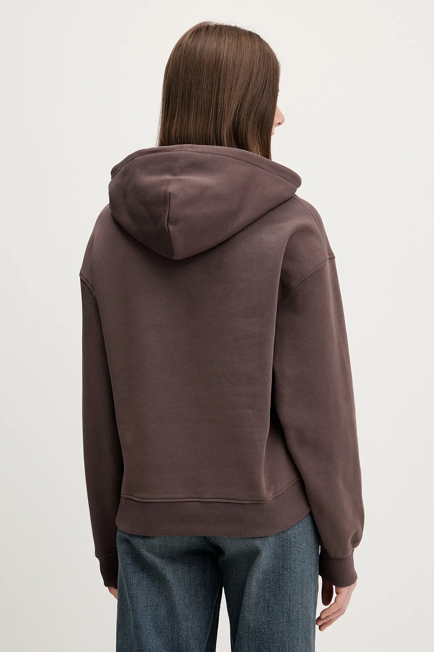 Tommy Jeans bluza bawełniana damska kolor brązowy z kapturem z aplikacją DW0DW19414